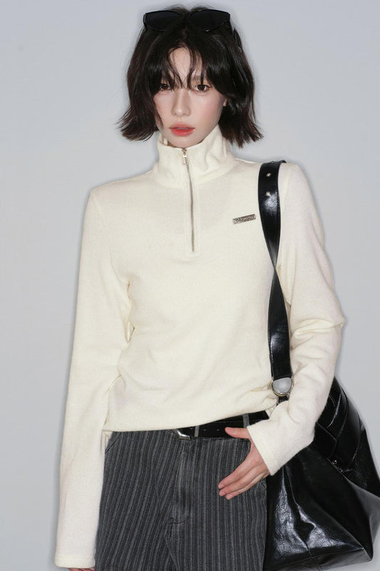 ベーシックソリッドハーフジップセーター