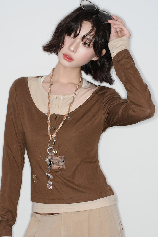 パッチワークカラーブロックブラウス