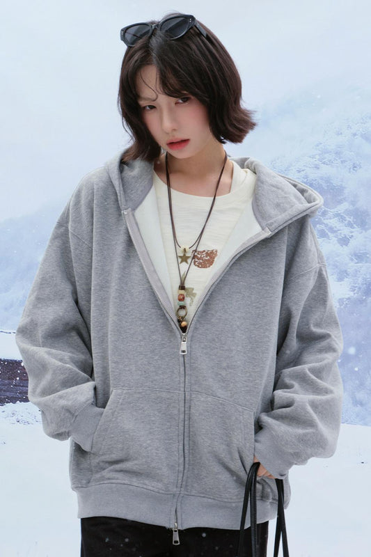 カジュアルルーズフードパーカー