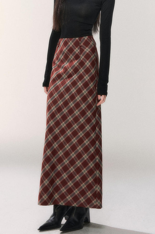 レトロレッドプラッドAラインスカート