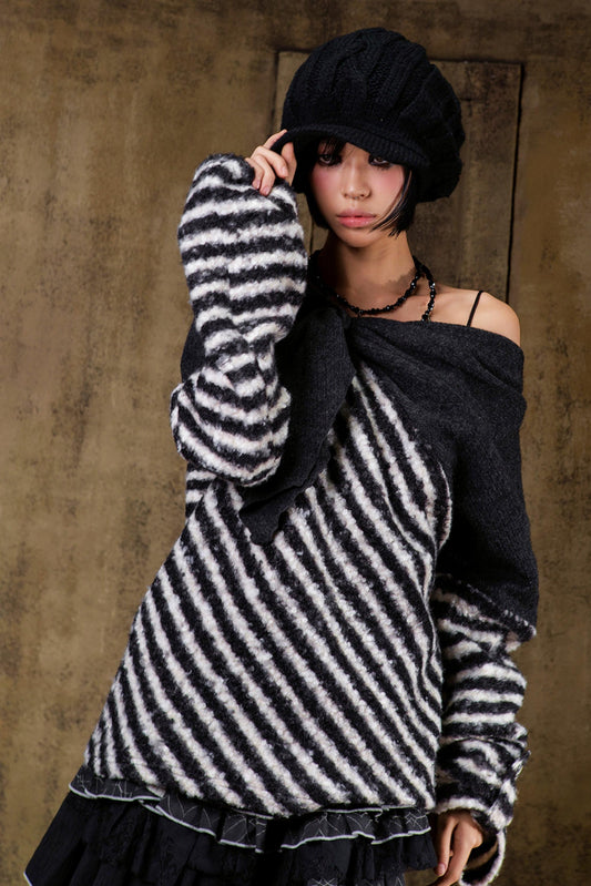 カラーブロックドストライプドニットセーター