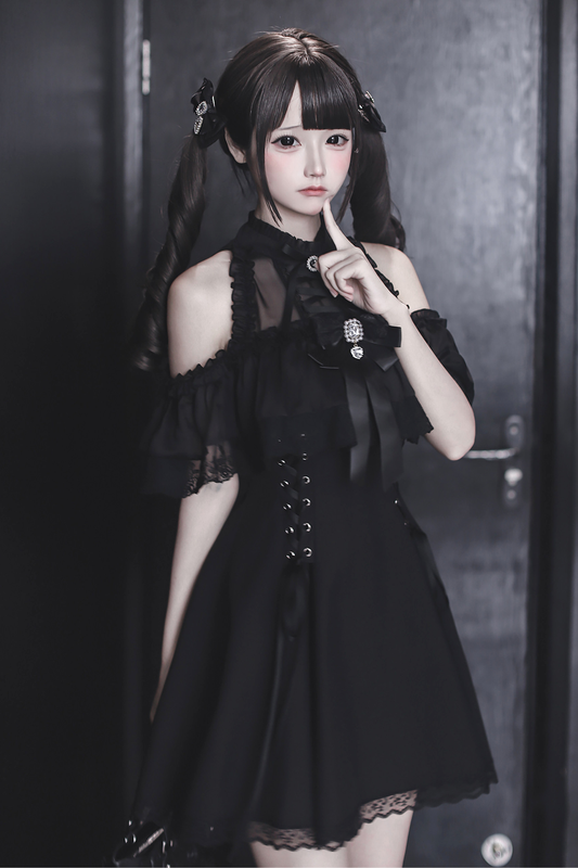 오프숄더 다크 카와이 레이스 원피스