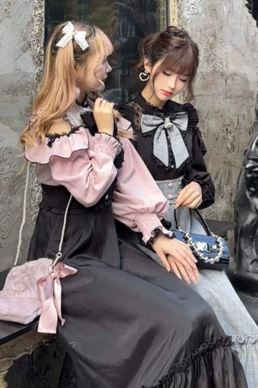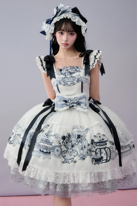 중국 디자인 플라잉 슬리브 로리타 원피스 + 리본