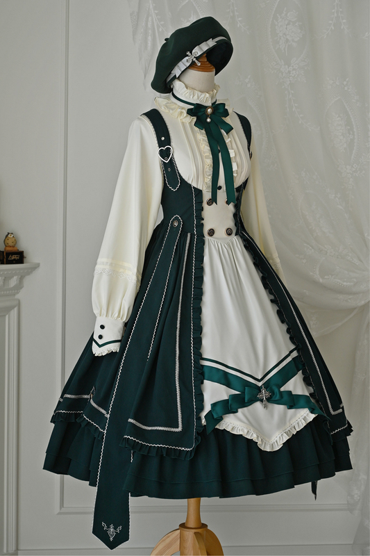 귀여운 차이나 재킷 + 스커트 + 오버스커트 + 리본 + 브로치 + 헤어밴드