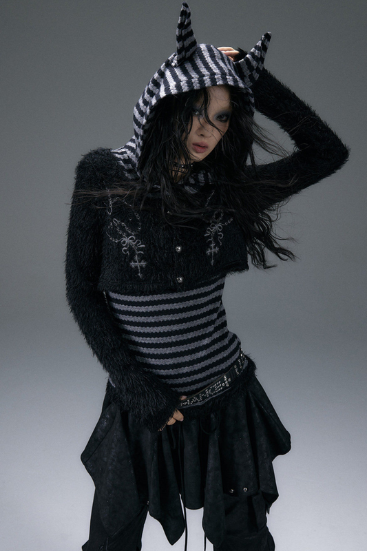 고양이 귀 재킷 + 케이크 스커트 + 상의 + 보더 레그 워머