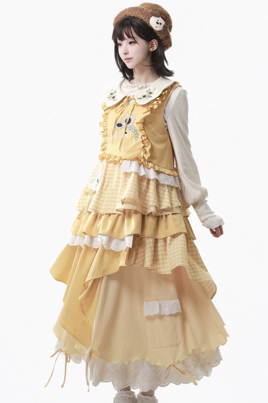 옐로우 프릴 탱크 탑 + 상의 + 스커트