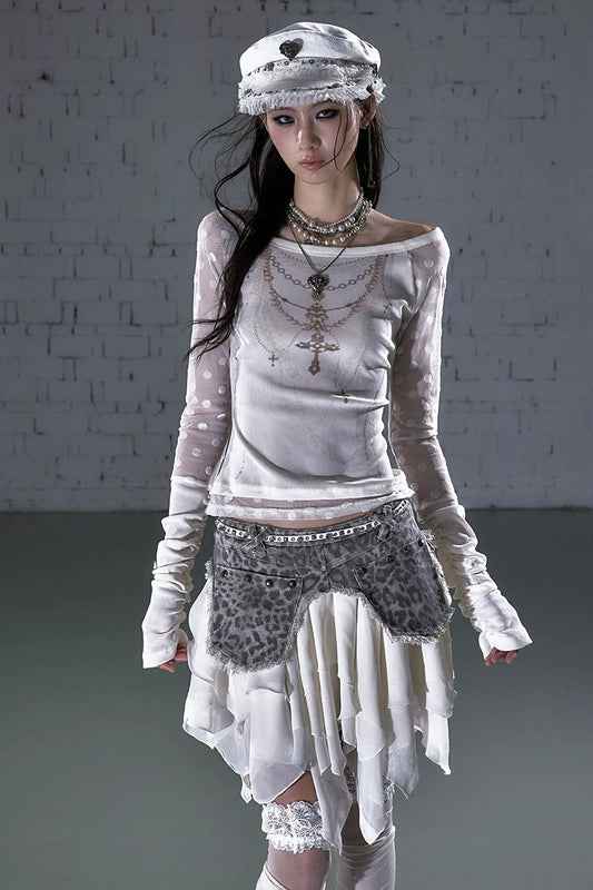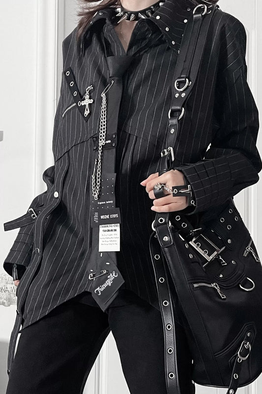 ダークパンクワンショルダートップス