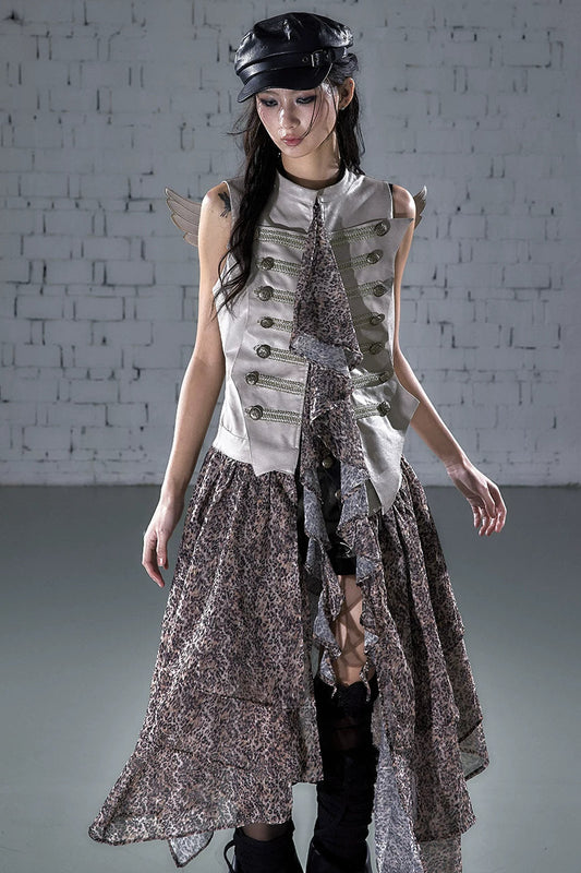 펑크 레이스 후드 비대칭 원피스
