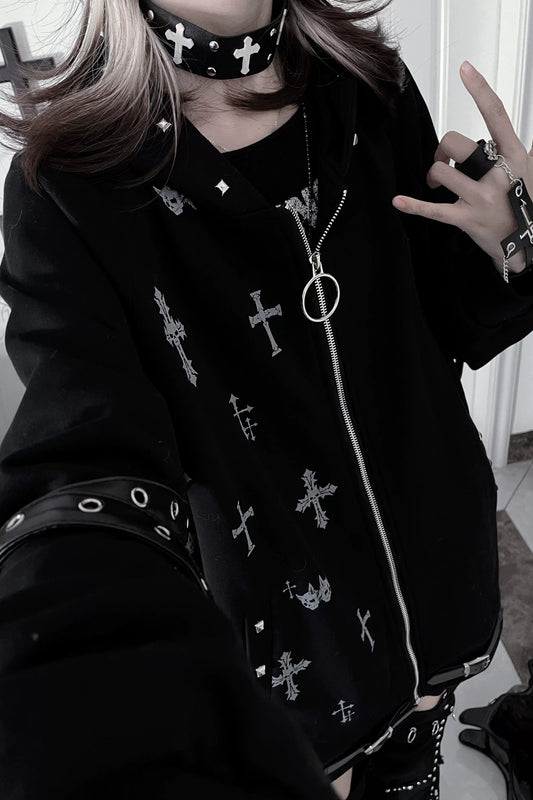 서브컬처 다크 크로스 후드 파카