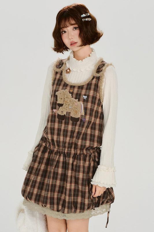 チェックプラッドエンブロイダードレス
