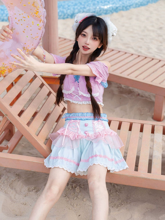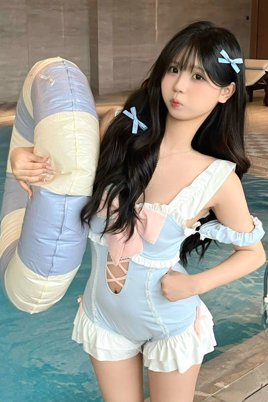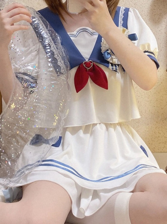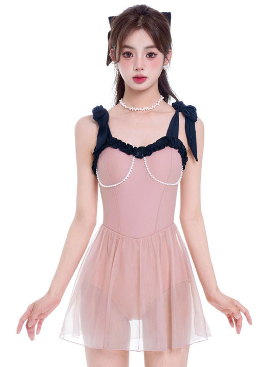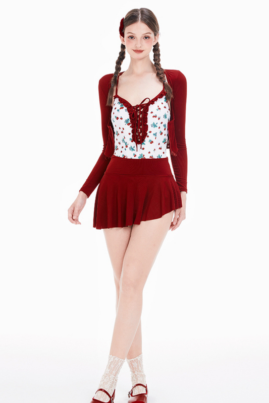 【数量限定】レッドハートトレーリングリボンキュート水着セットアップ