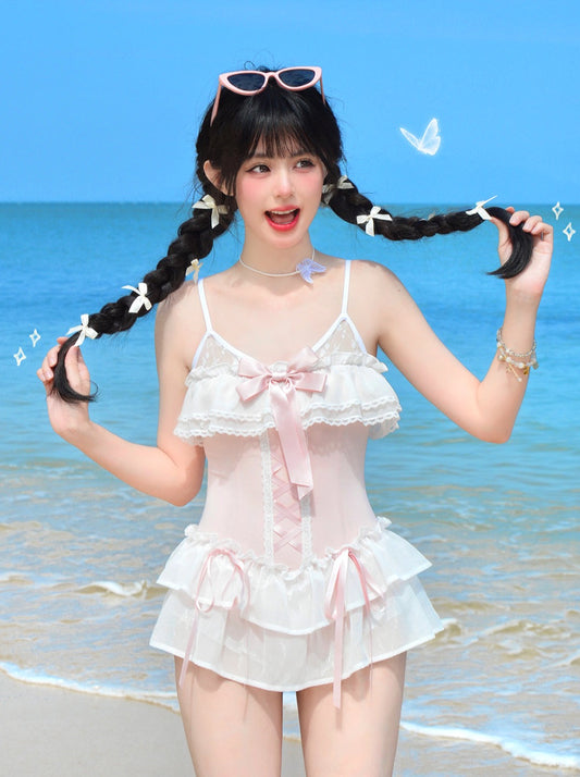 【予約商品】ピュアホワイトスプリットスリーピース水着