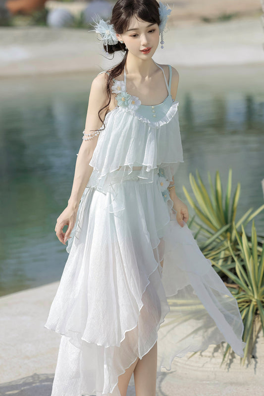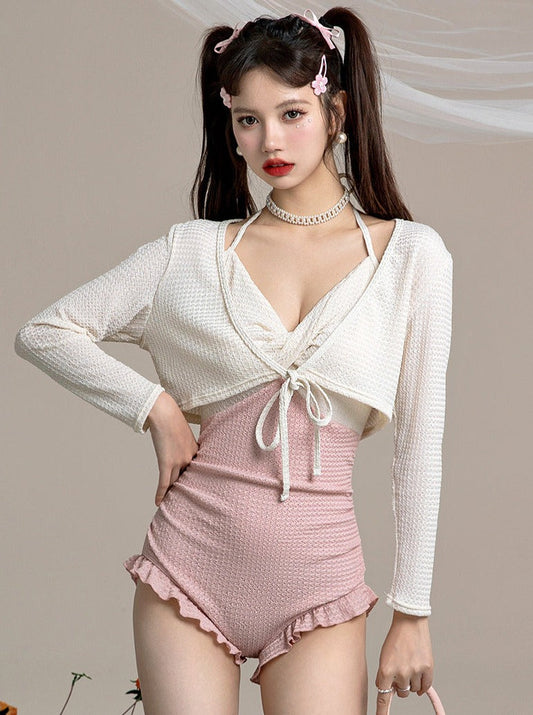 レトロワンピース+アシメスカート+スリムジャケット水着