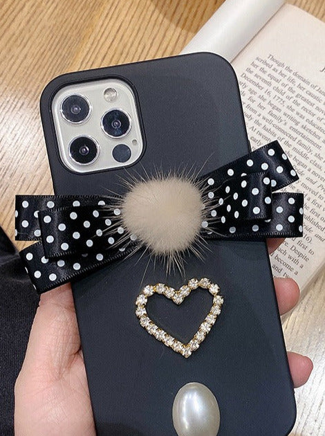 스위트 하트 밍크털 도트 리본 하이엔드 스마트폰 케이스