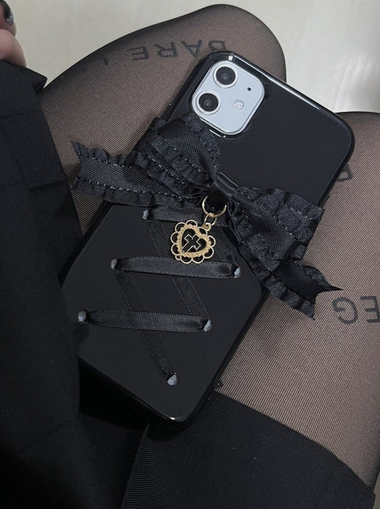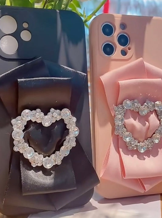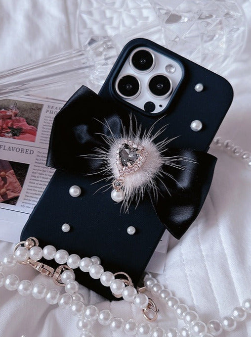러브 다이아몬드 모피 리본 진주 크로스 바디 체인 스마트폰 케이스