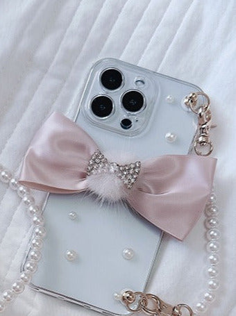 진주 체인 라인스톤 리본 밍크 모피볼 스마트폰 케이스