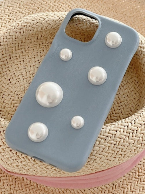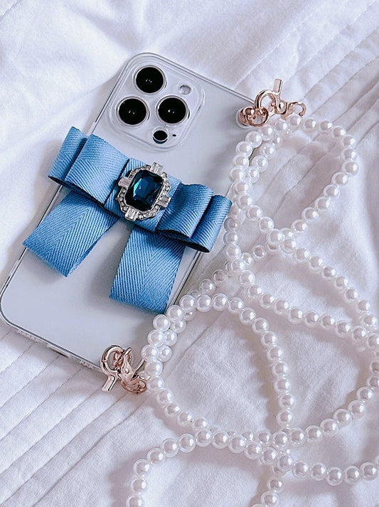진주 체인 라인석 블루 리본 스마트폰 케이스 (진주 체인 라인석)