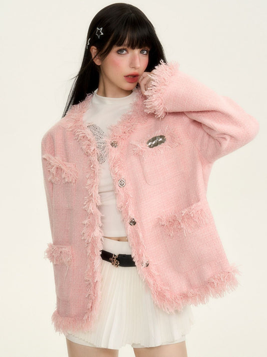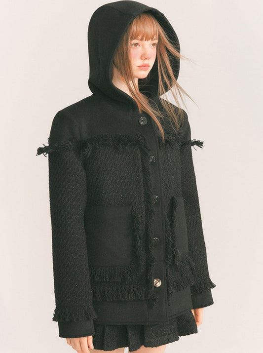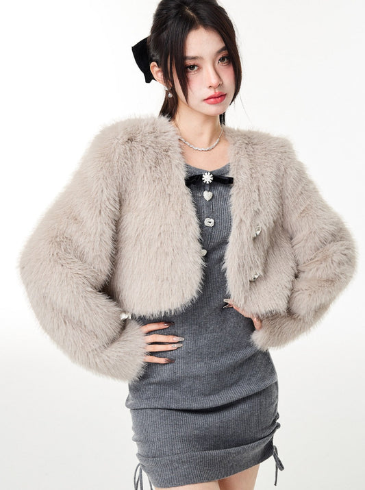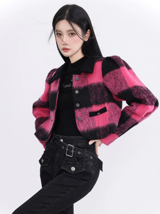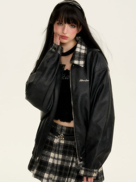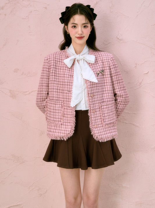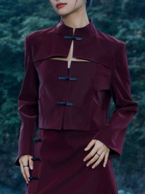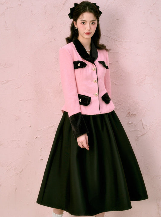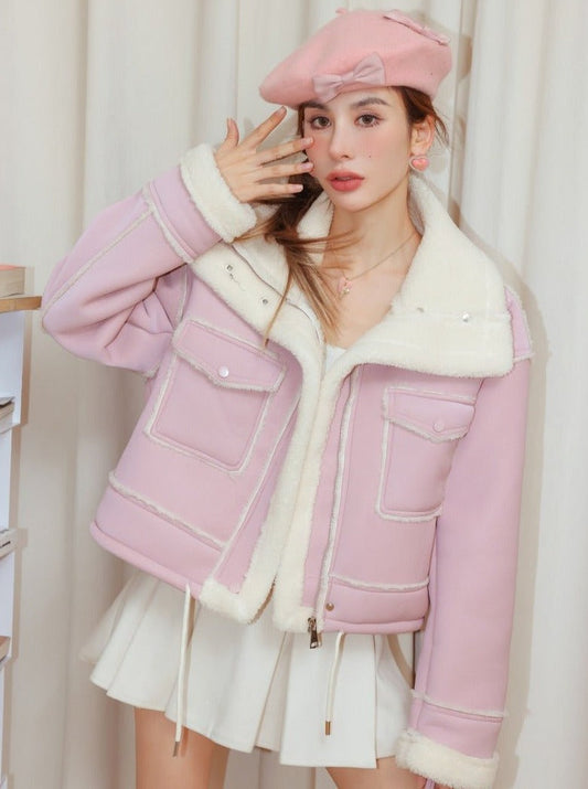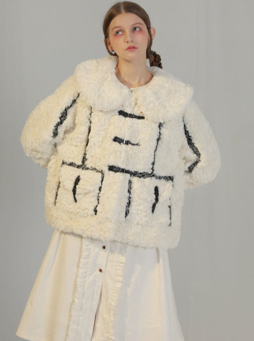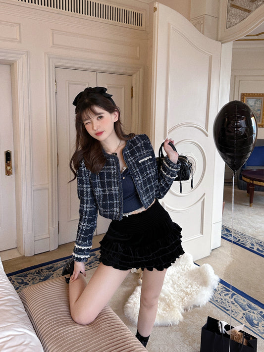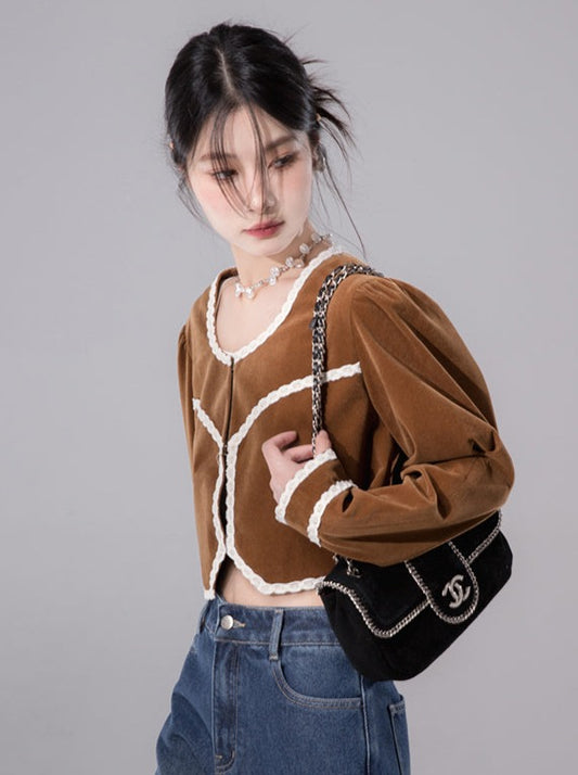 라테 브라운 패치워크 벨벳 쇼트 재킷