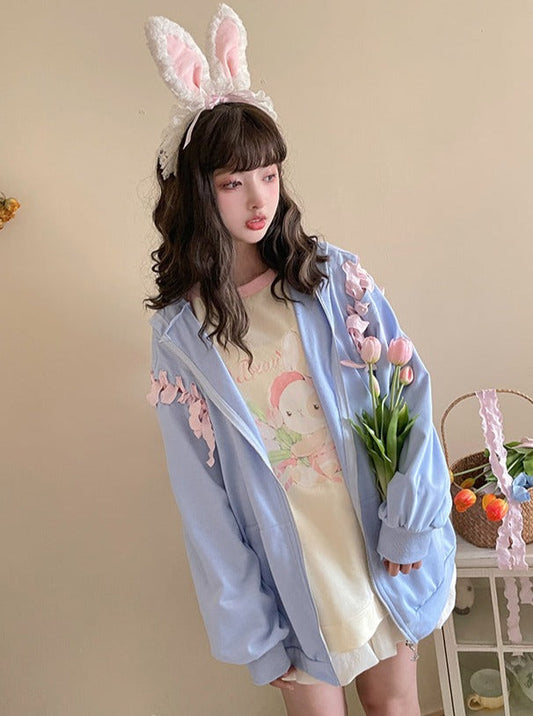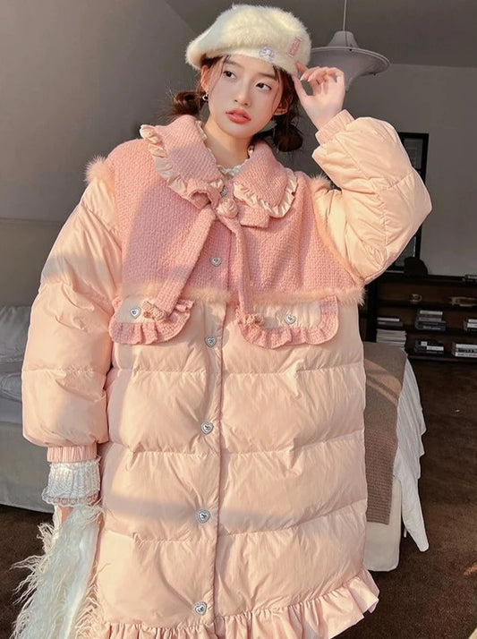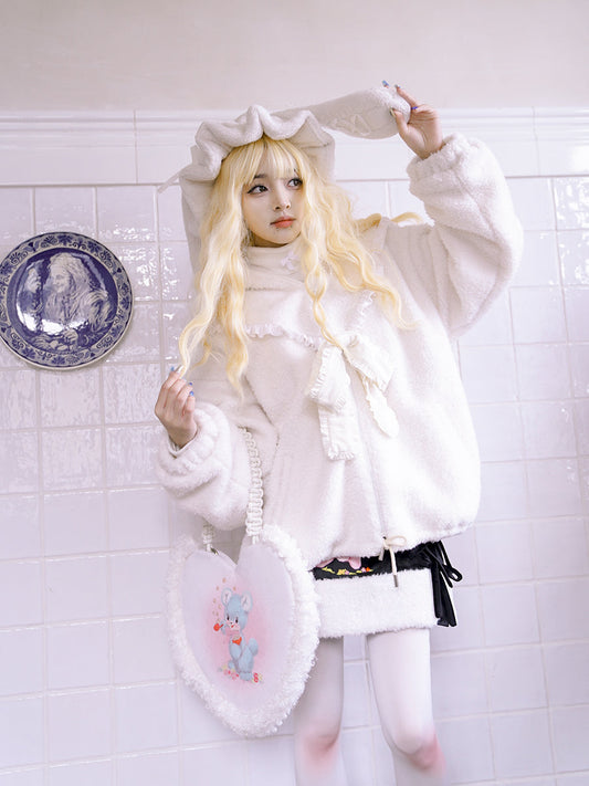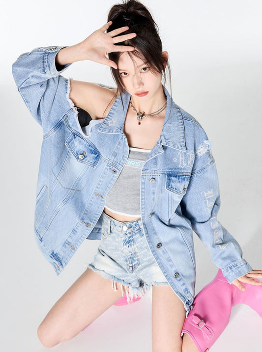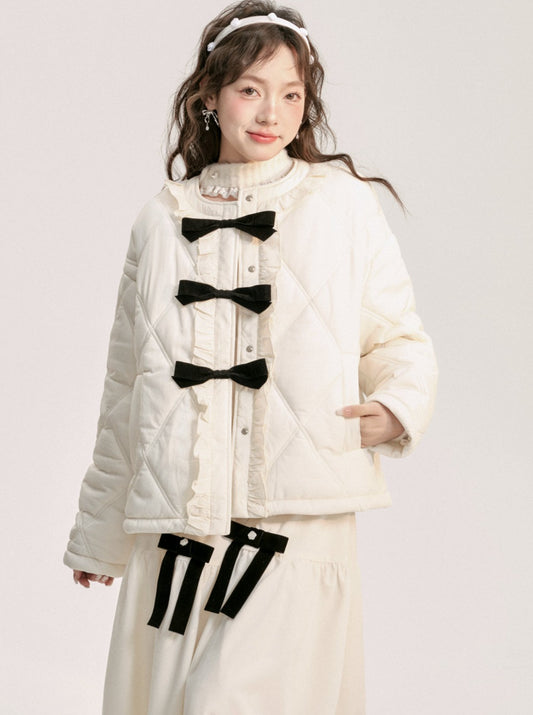 버터플라이 프린트 쇼트 화이트 덕 다운 재킷