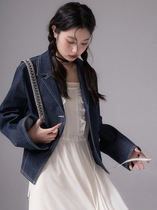 콘트라스트 그린필드 펄 라펠 칼라 자켓 (콘트라스트 그린필드)