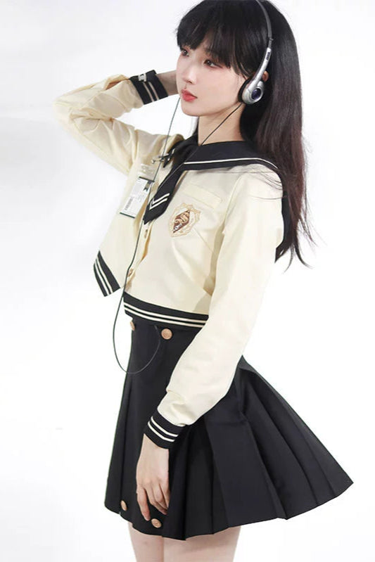 アニメーションヒロインセーラートップス+プリーツスカート+レッグカバー