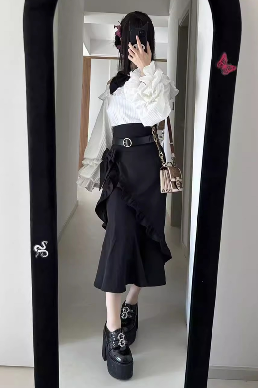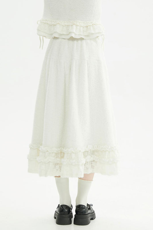 クリーミーラッフルヘムニットスカート