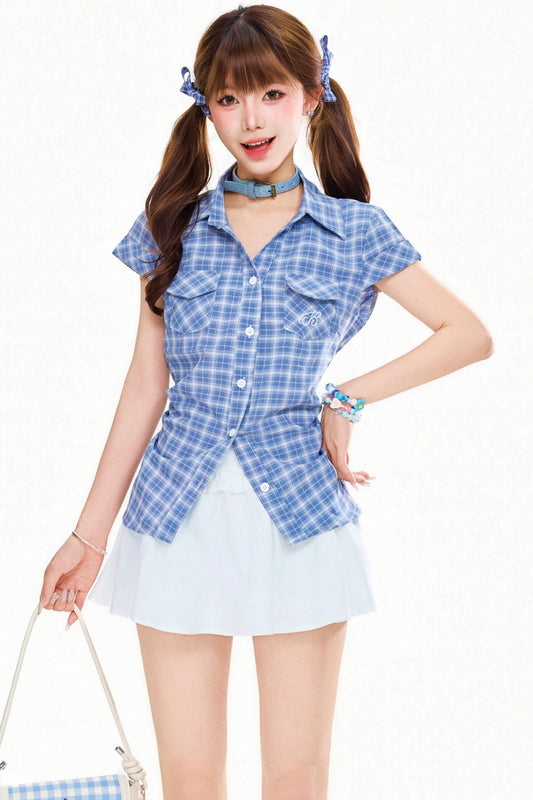レトロプラッドスリムフィットシャツ