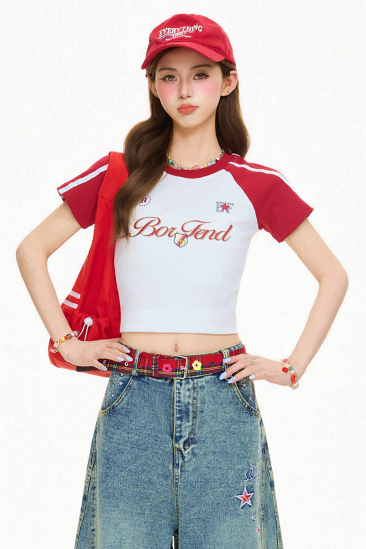 컬러 블로킹 레터 프린트 탑