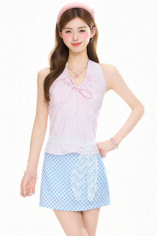 리본 매듭 홀터넥 탑