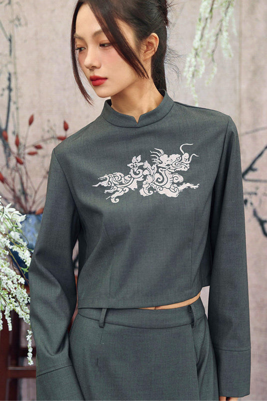 Dragonborn 자수 블레이저 탑