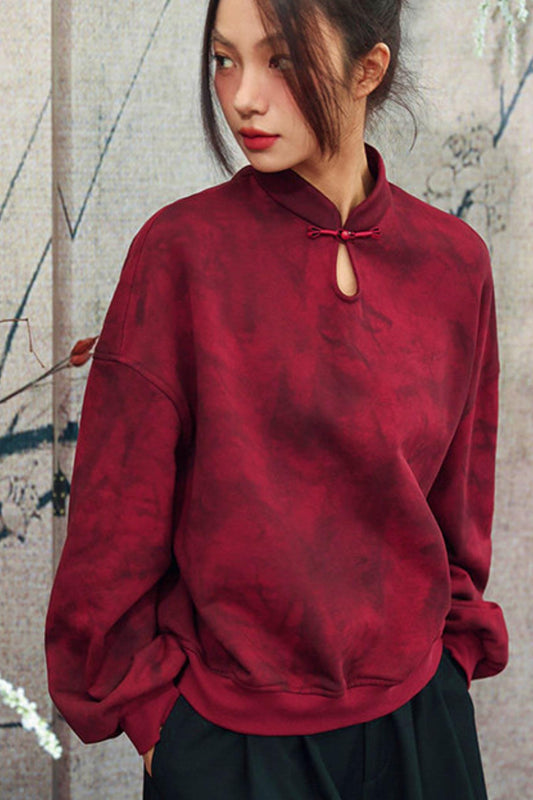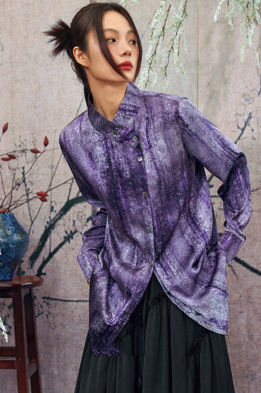 새틴 레트로 스탠드 칼라 탑