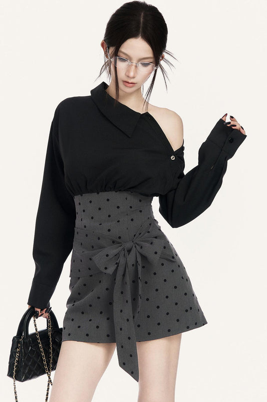 바 스타일 레이스업 블라우스