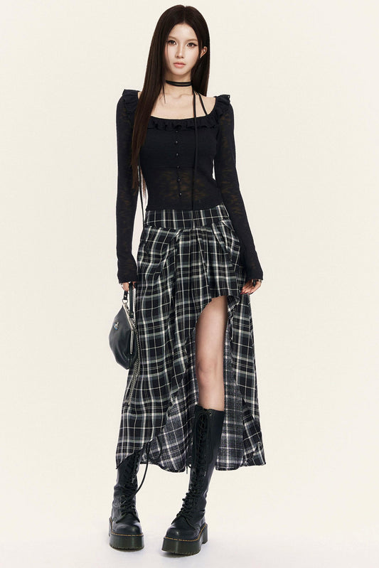 모드 체크 슬릿 롱 스커트