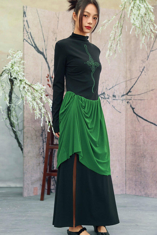 차이나 플레어 상의 + 슬릿 스커트