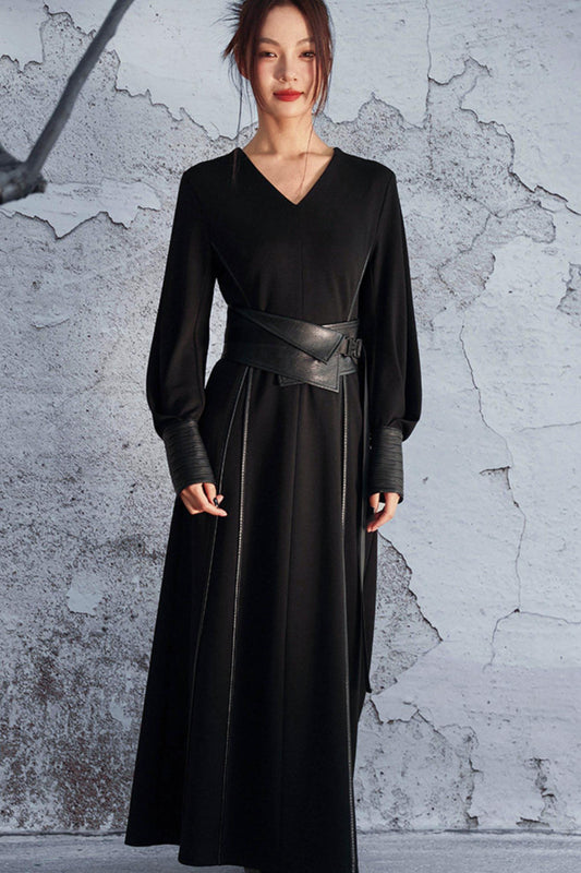 니트 가죽 패치워크 원피스