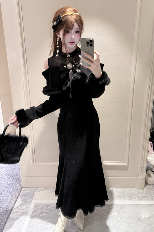 クロップドオフショルダードレス