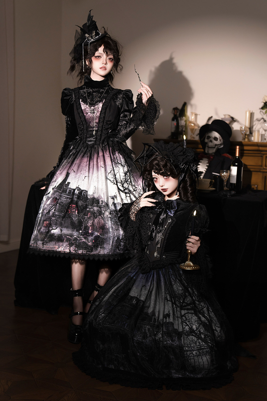【12月15日予約締切】ブラックホワイトダークジュリエットスリーブドレス+アクセサリー