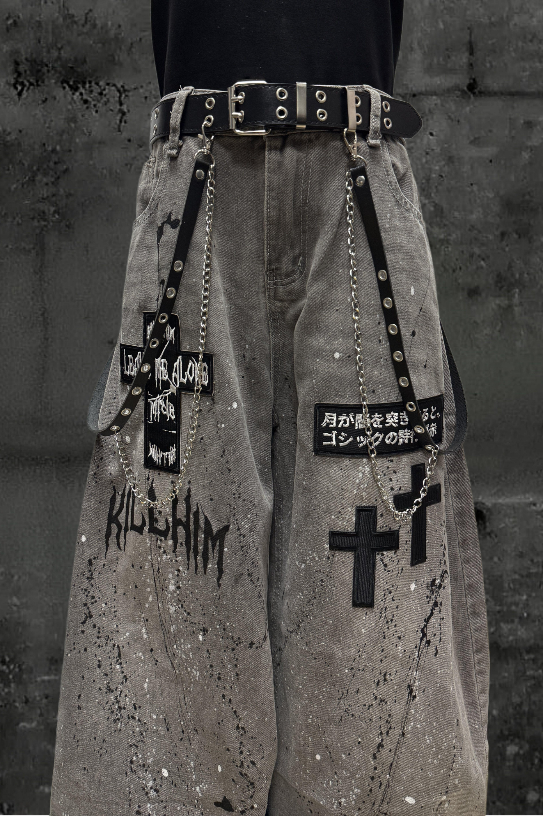 ❤クロスモードワイドデニムパンツ+ベルト❤