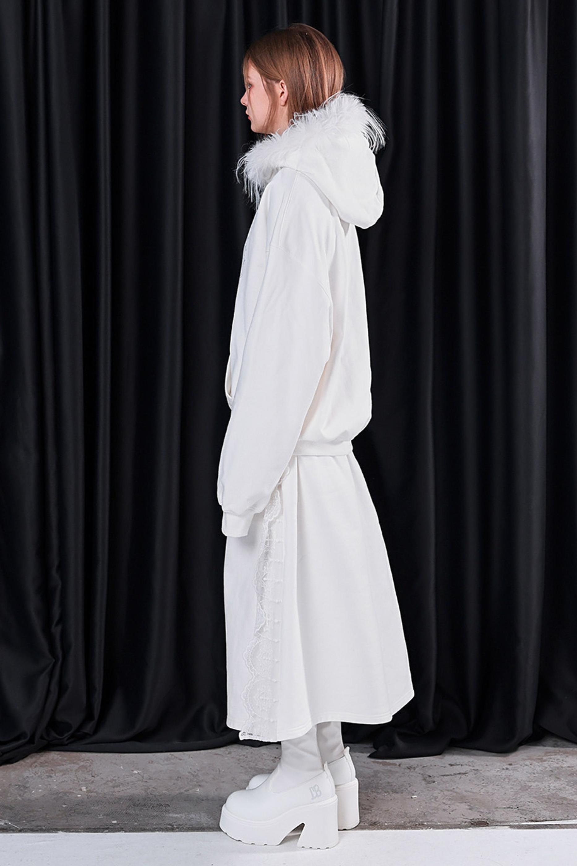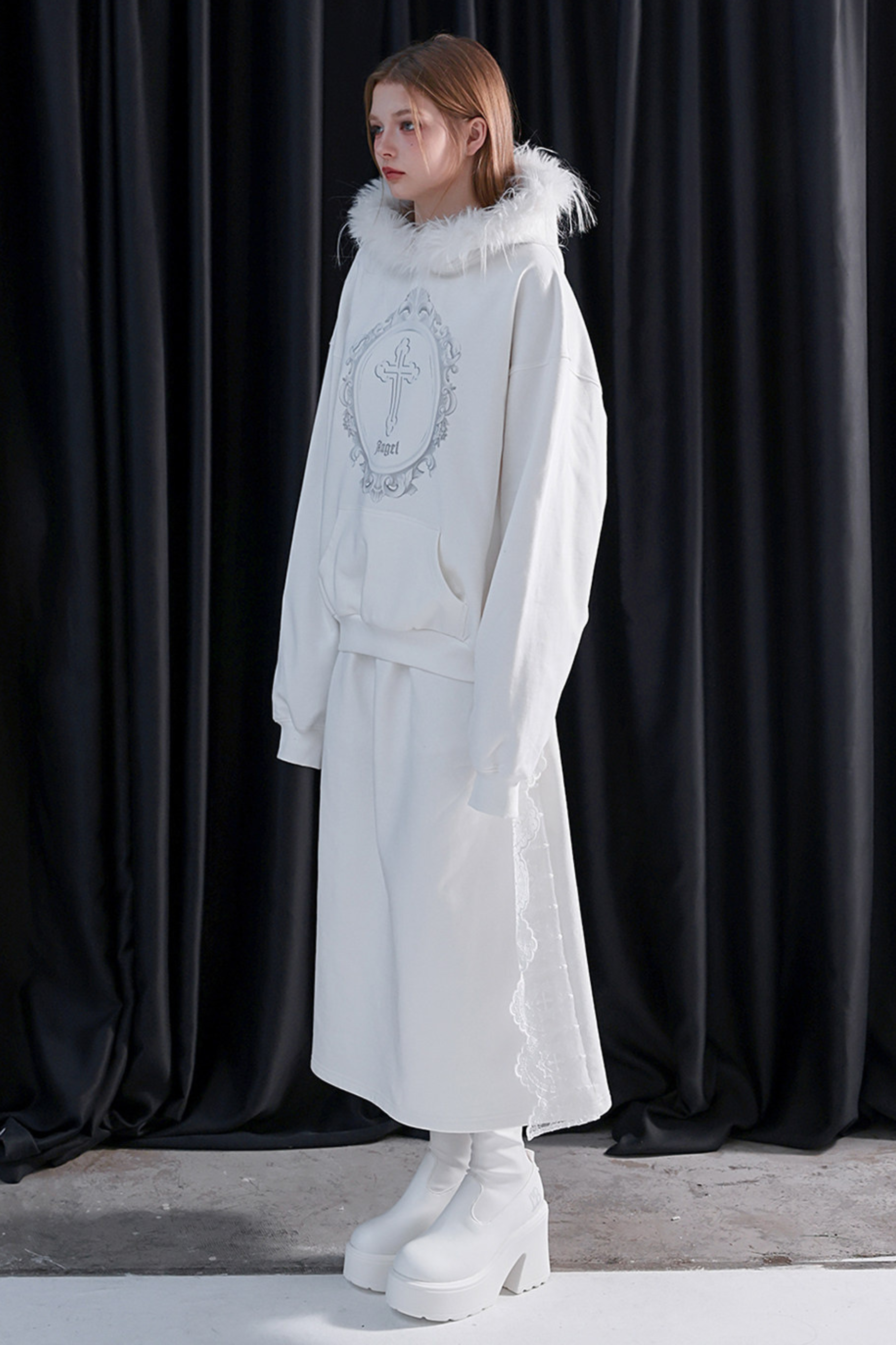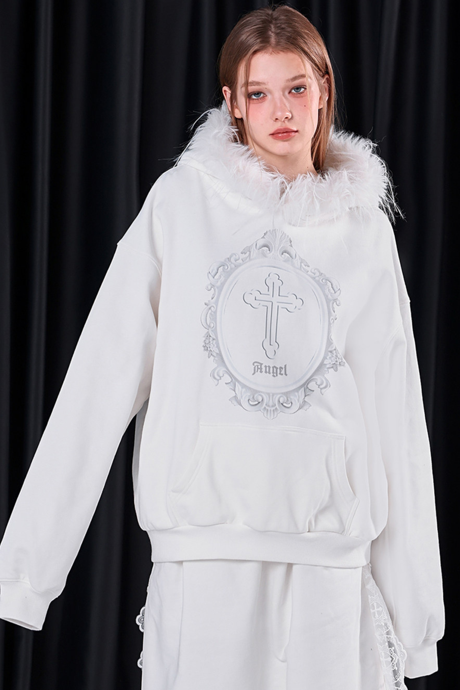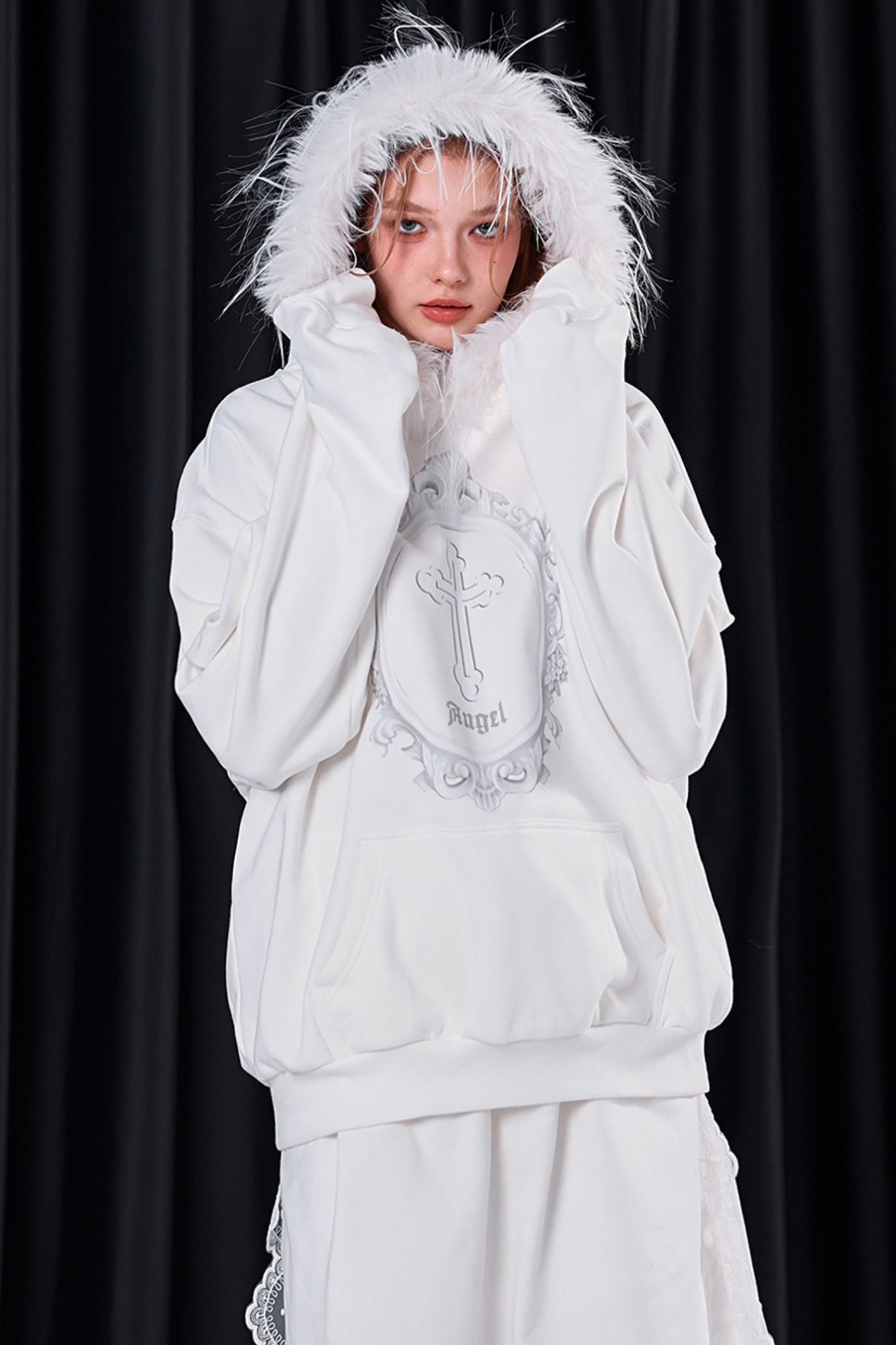 ファーフードモードルーズトップス