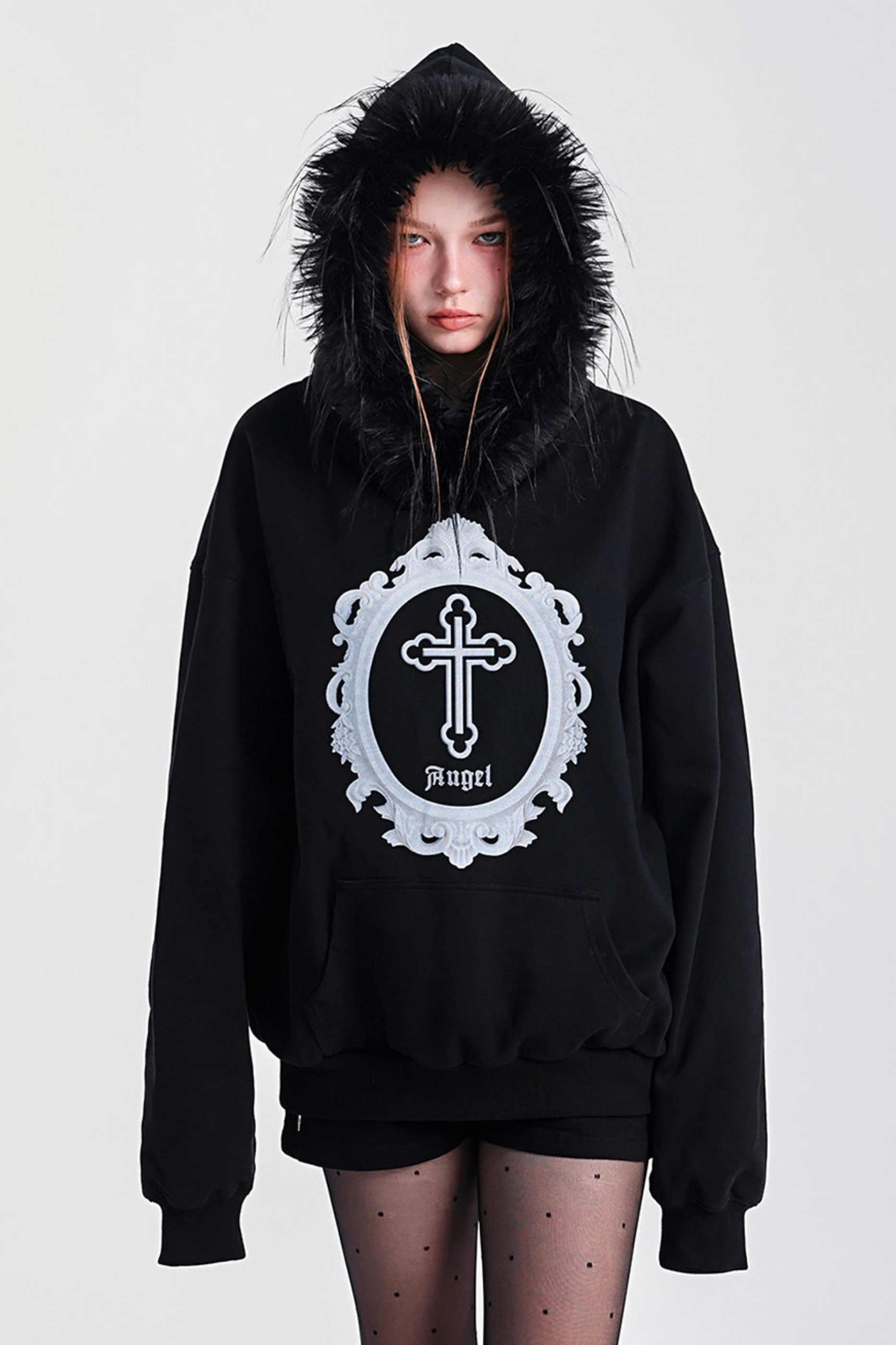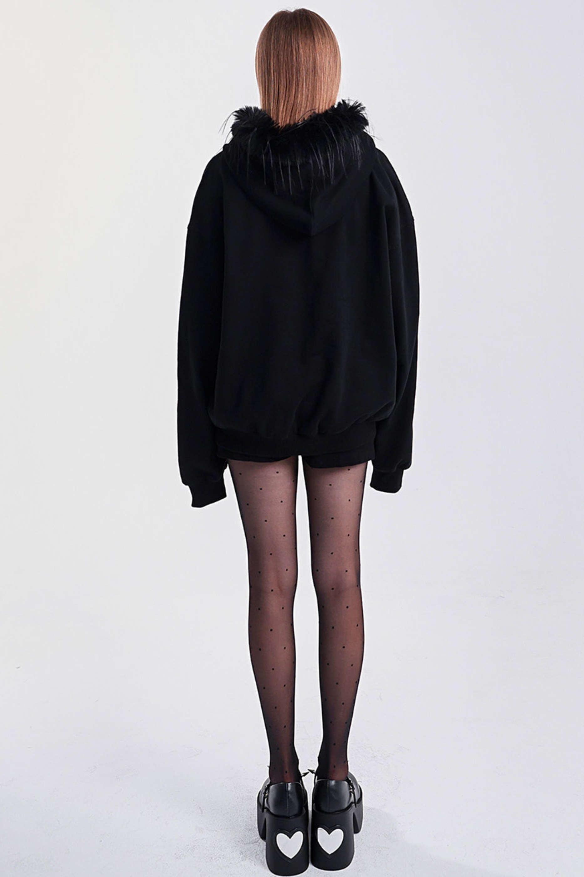 ❤ファーフードモードルーズトップス❤
