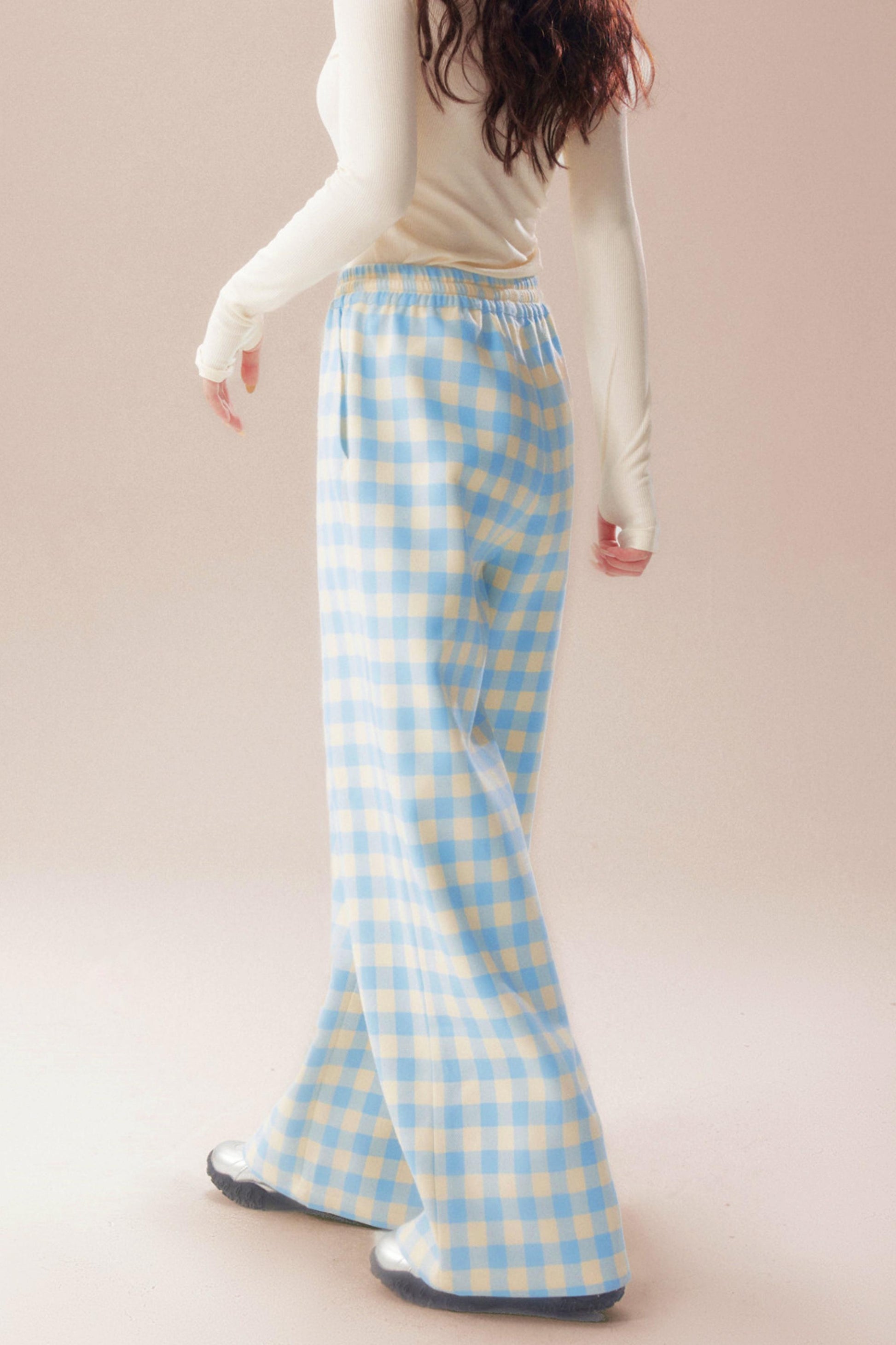 ブループレイドストレートレッグパンツ