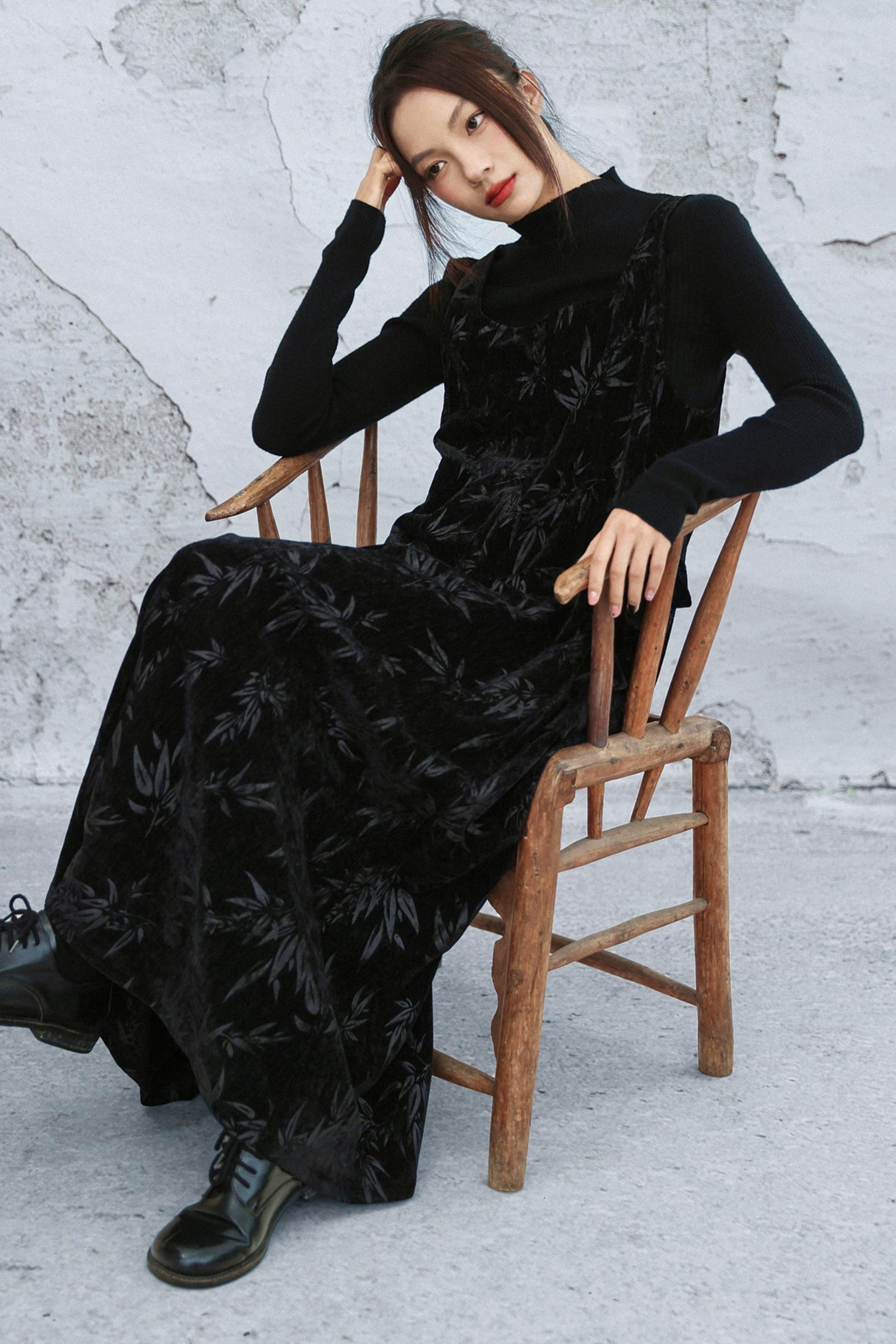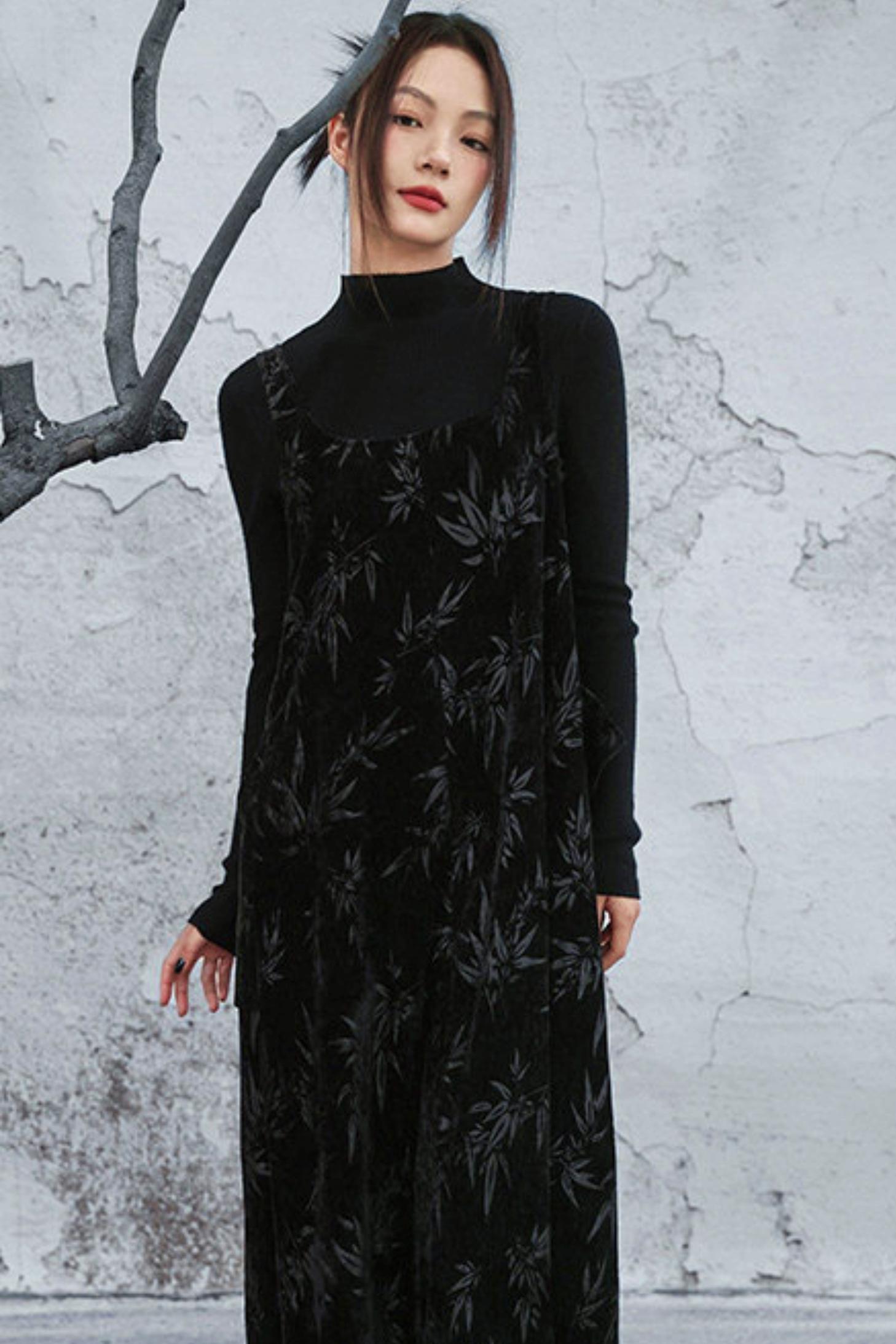 シェニールダークパターンドレス