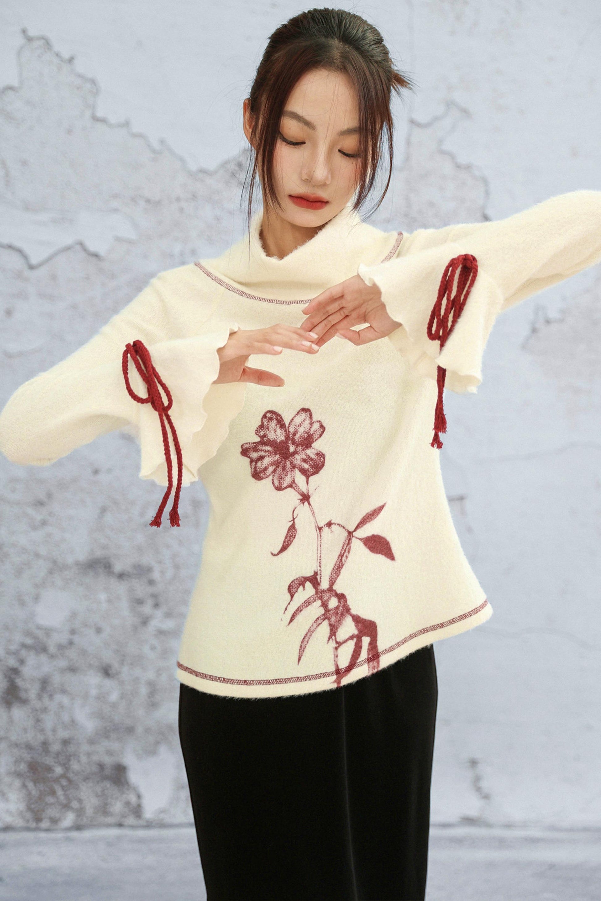 フラワーハイネックニット