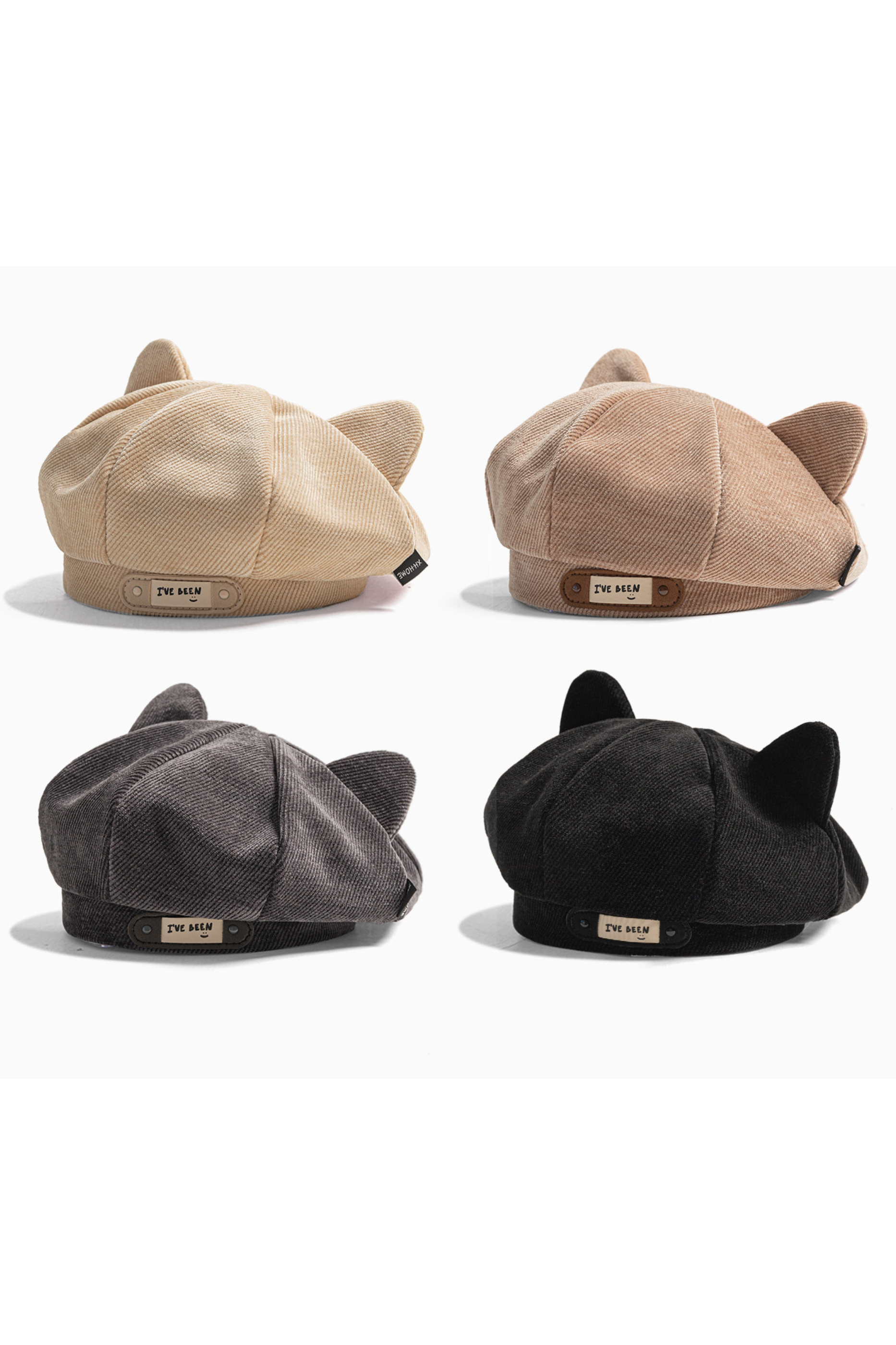 リトルキッズコーデュロイキャットイヤーベレー帽