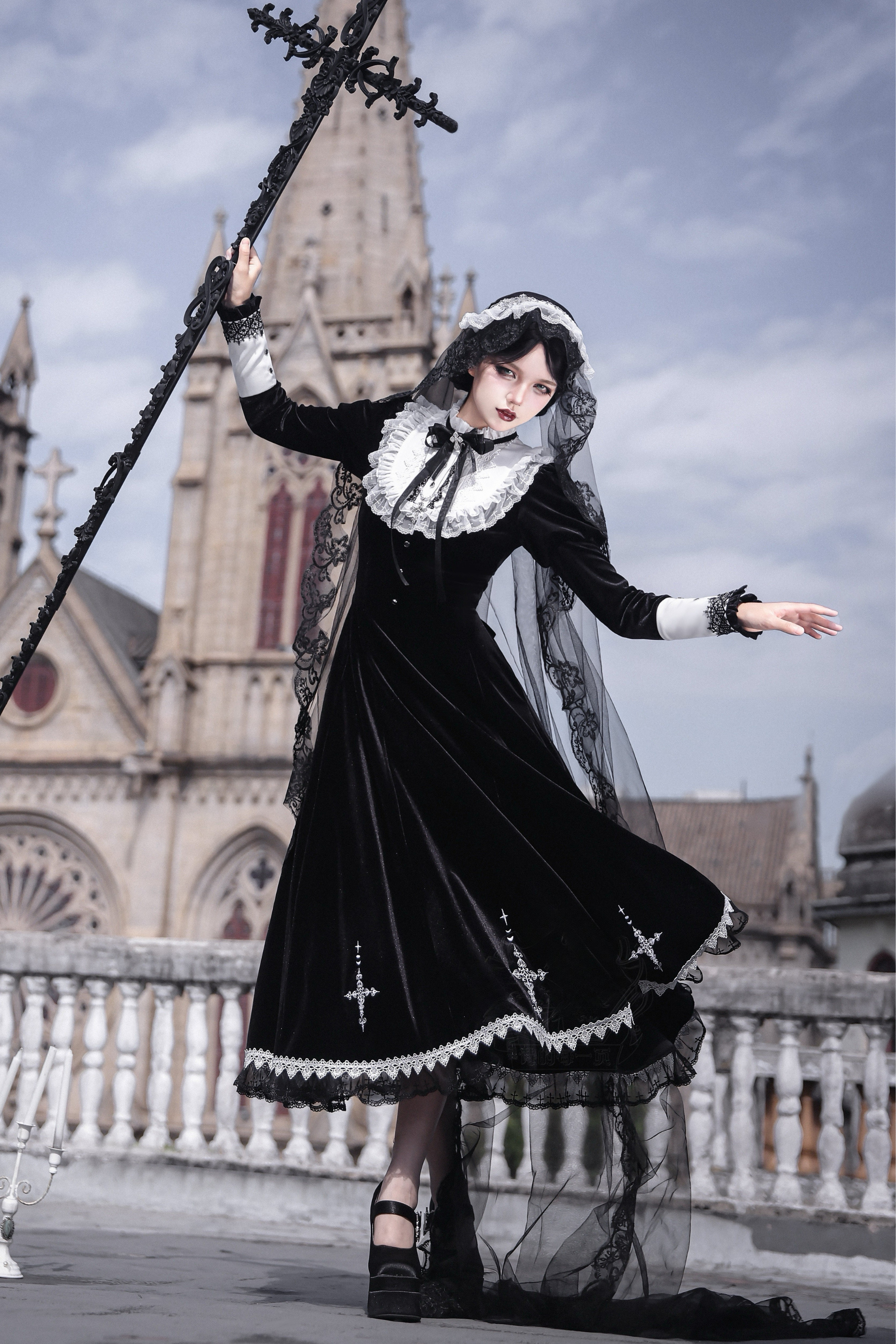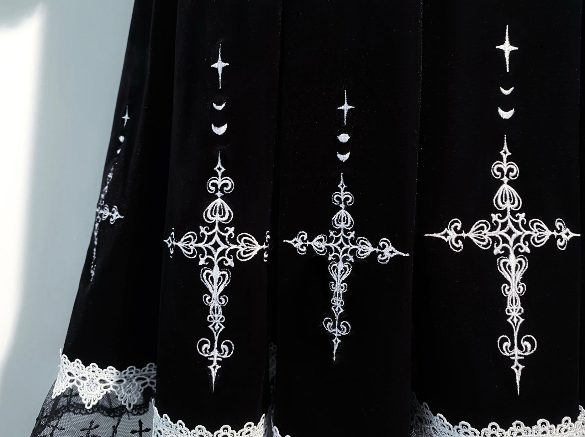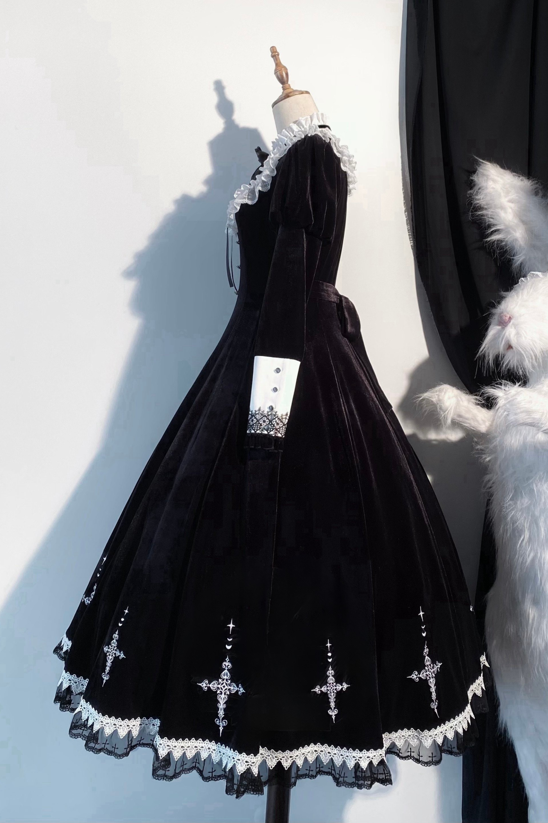 ❤︎【3月1日予約締切】ムーンクロスジュリエットスリーブブラックベルベットゴシックドレス+アクセサリー❤︎ ⚠️人気商品のためお届けに4ヶ月ほどかかってしまう場合がございます