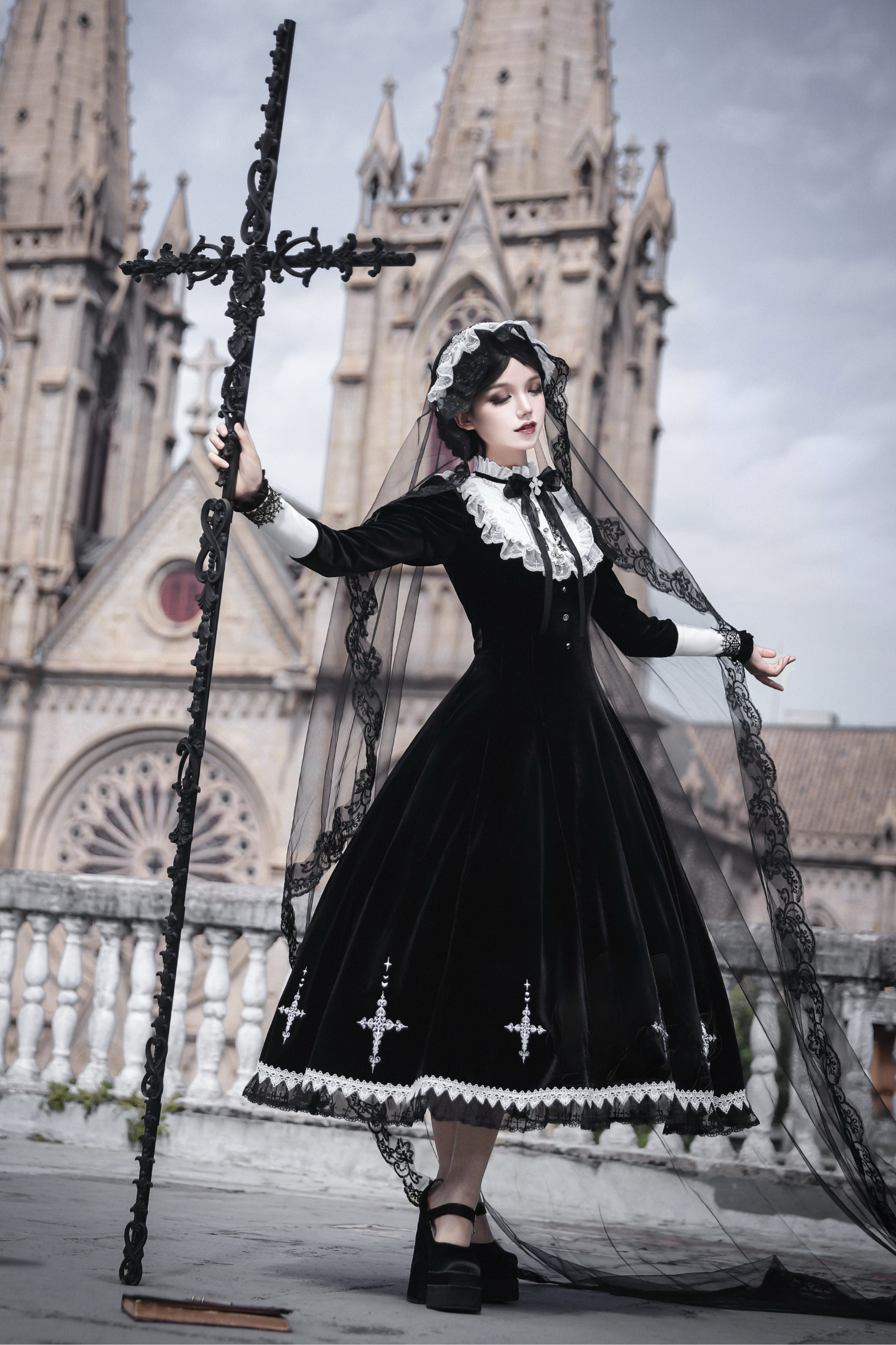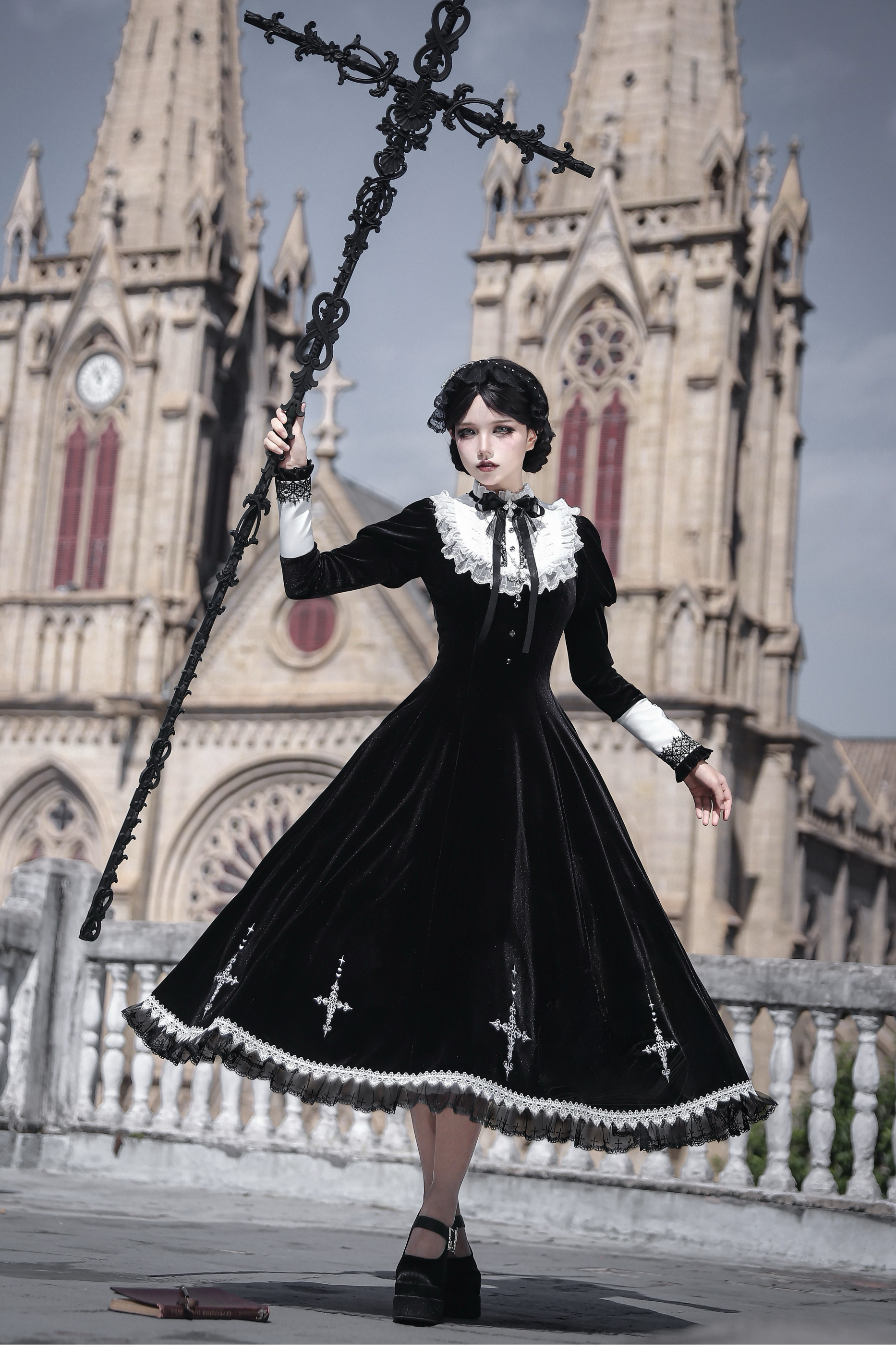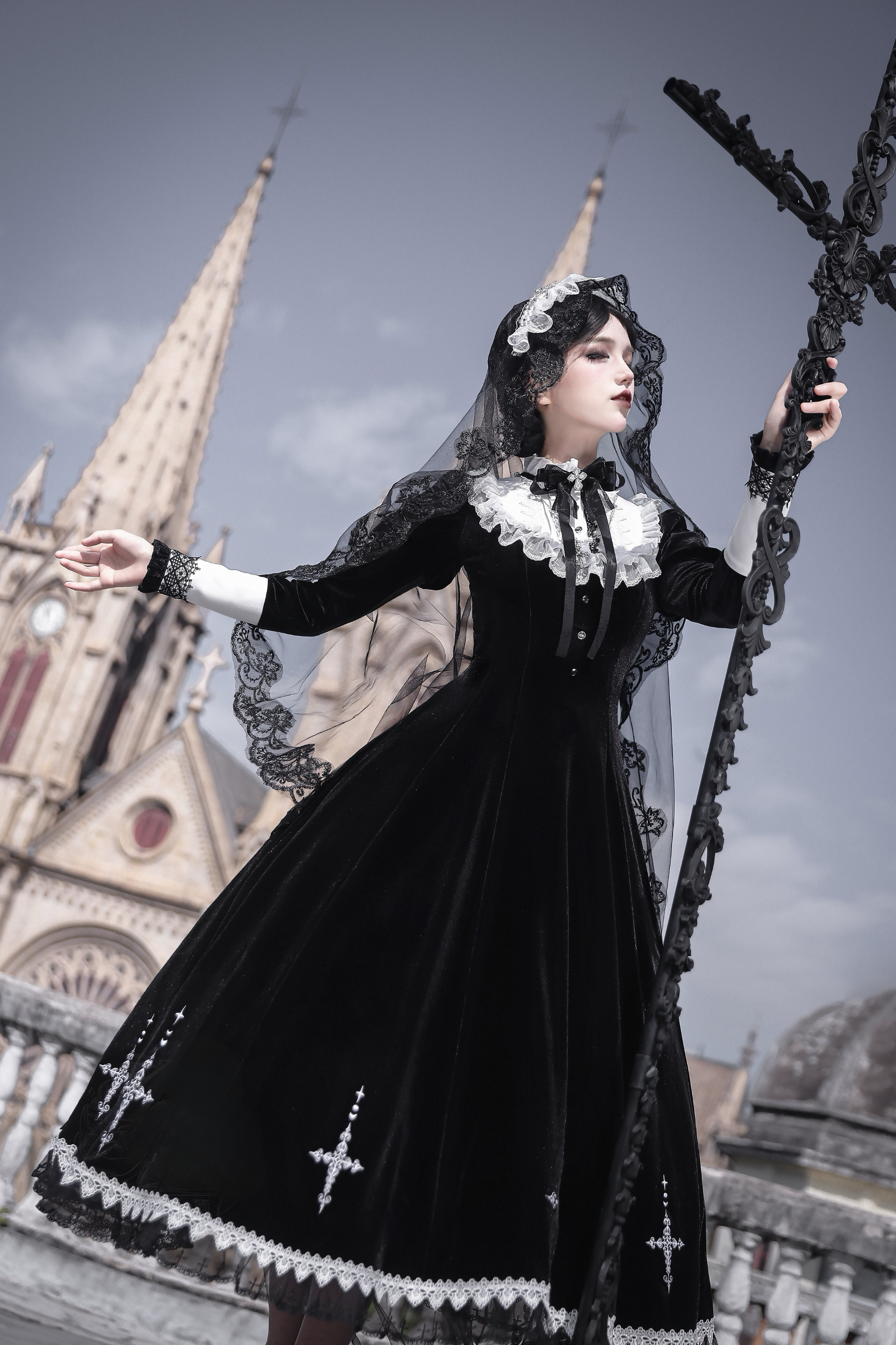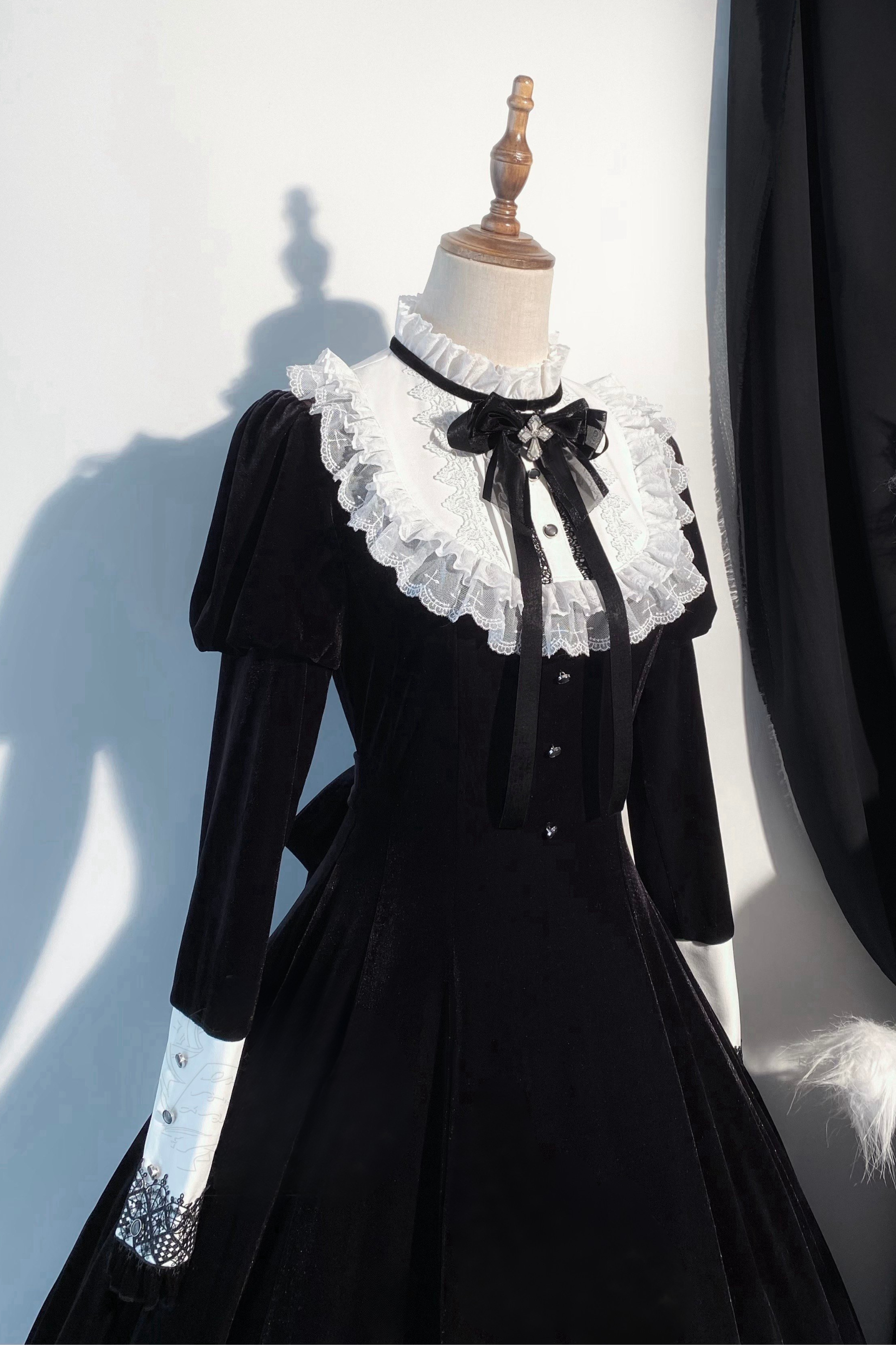 ❤︎【3月1日予約締切】ムーンクロスジュリエットスリーブブラックベルベットゴシックドレス+アクセサリー❤︎ ⚠️人気商品のためお届けに4ヶ月ほどかかってしまう場合がございます