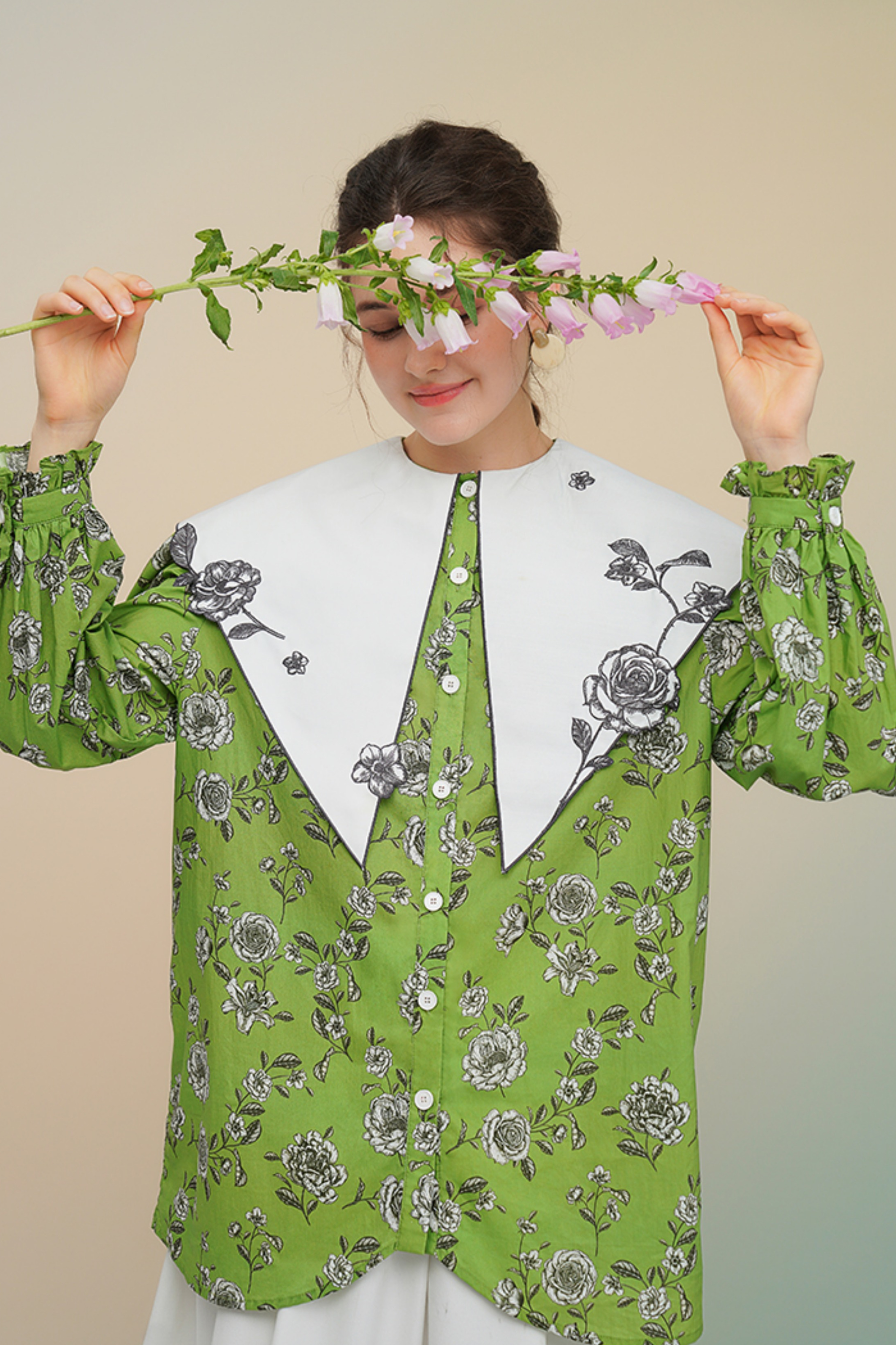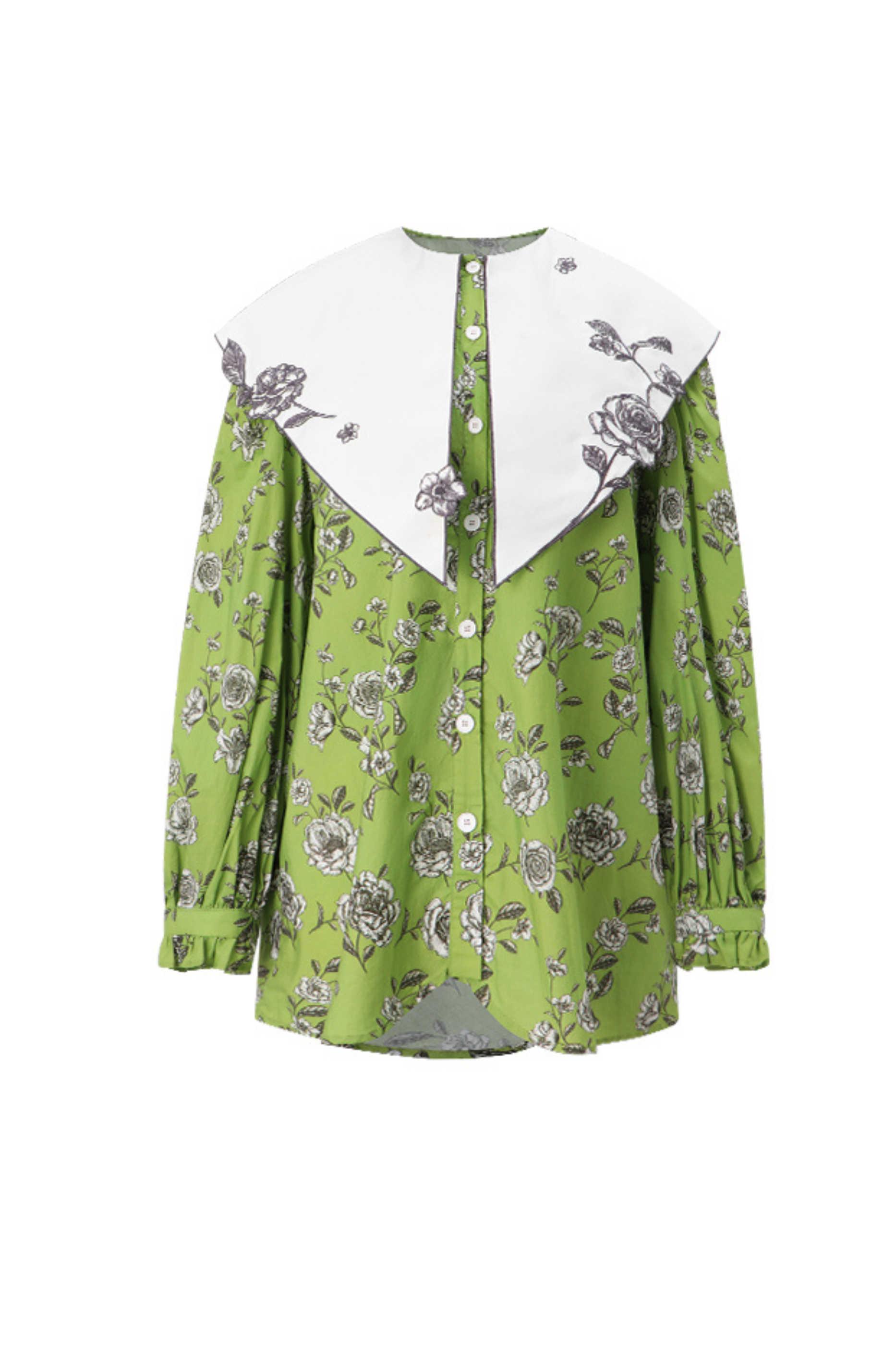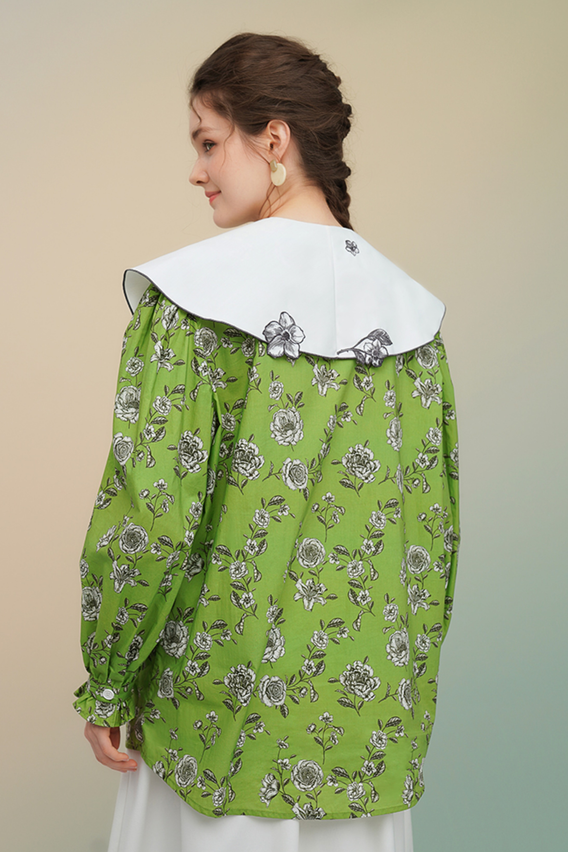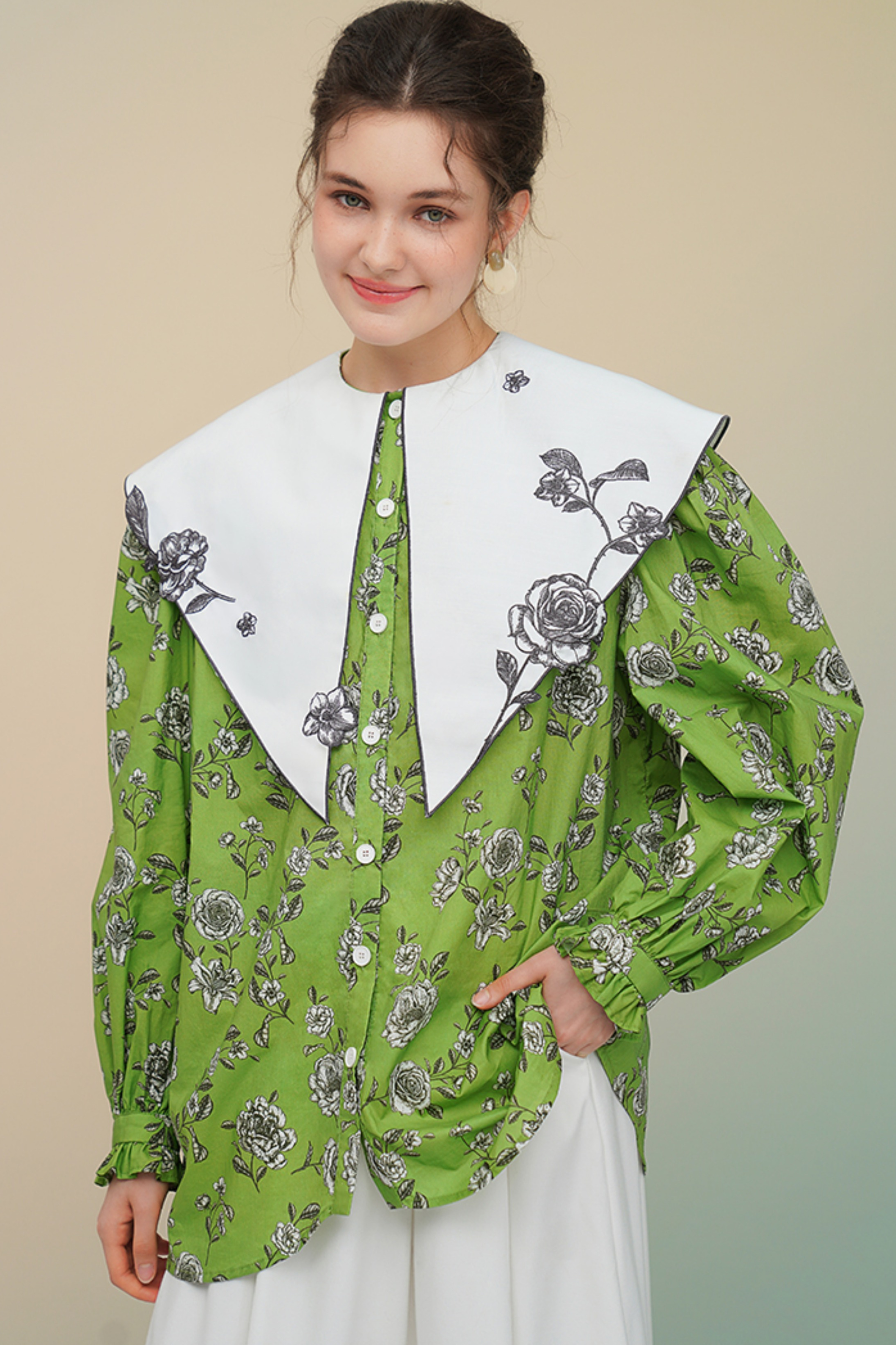 ❤グリーンローズフレンチヴィンテージプリントシャツ❤