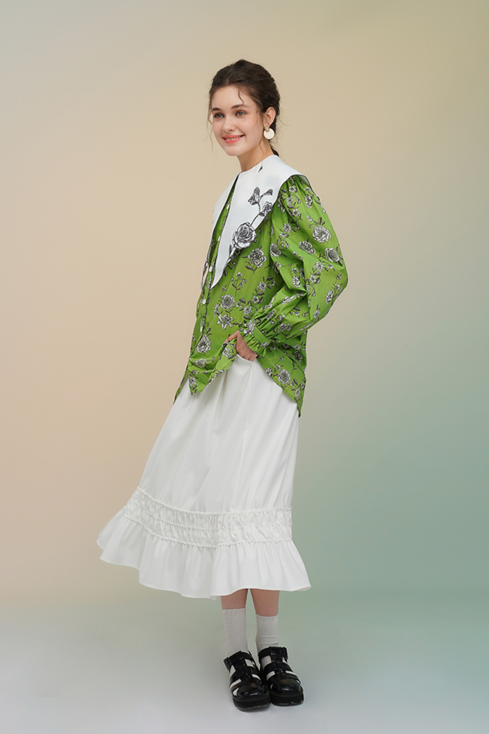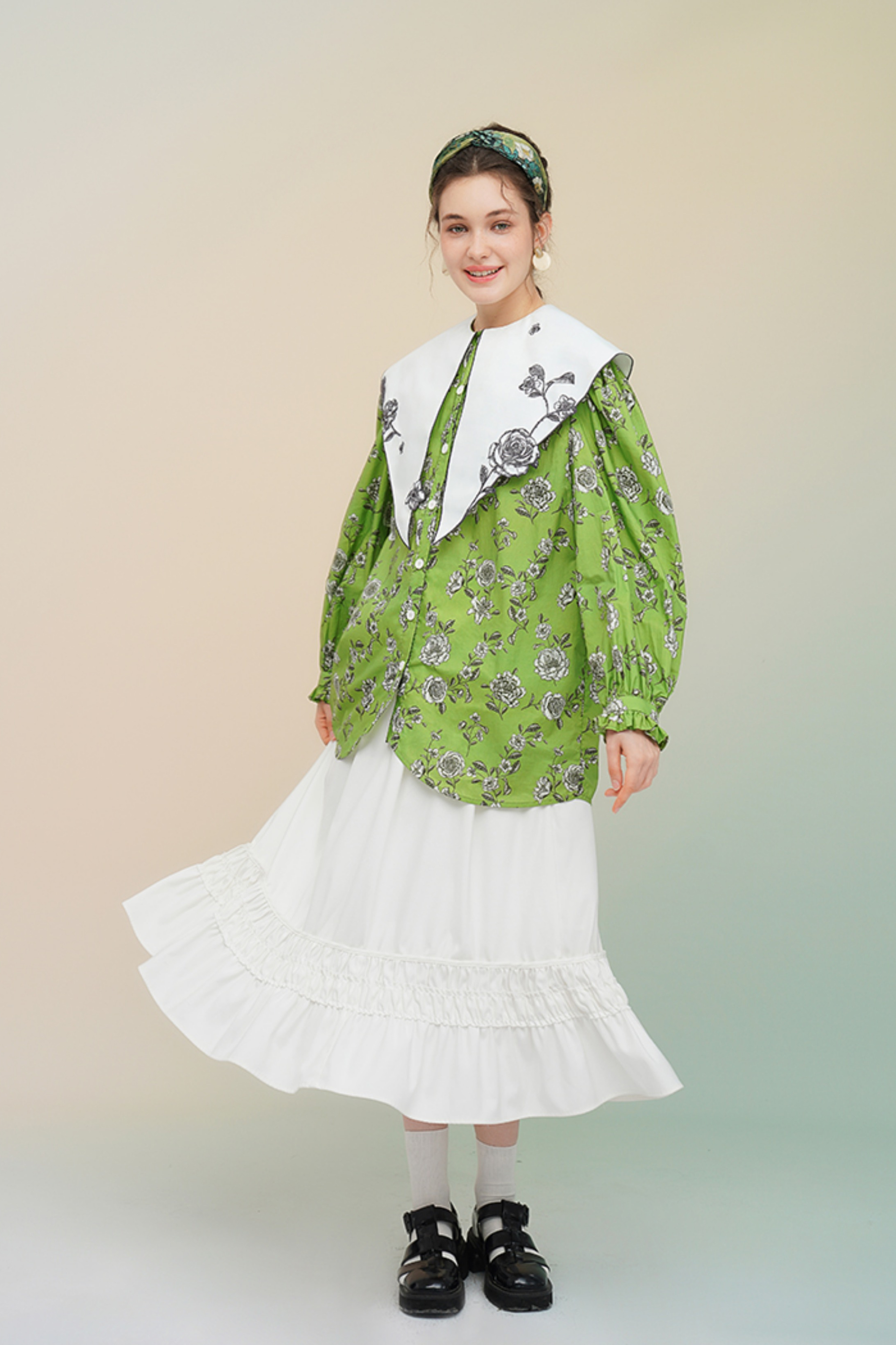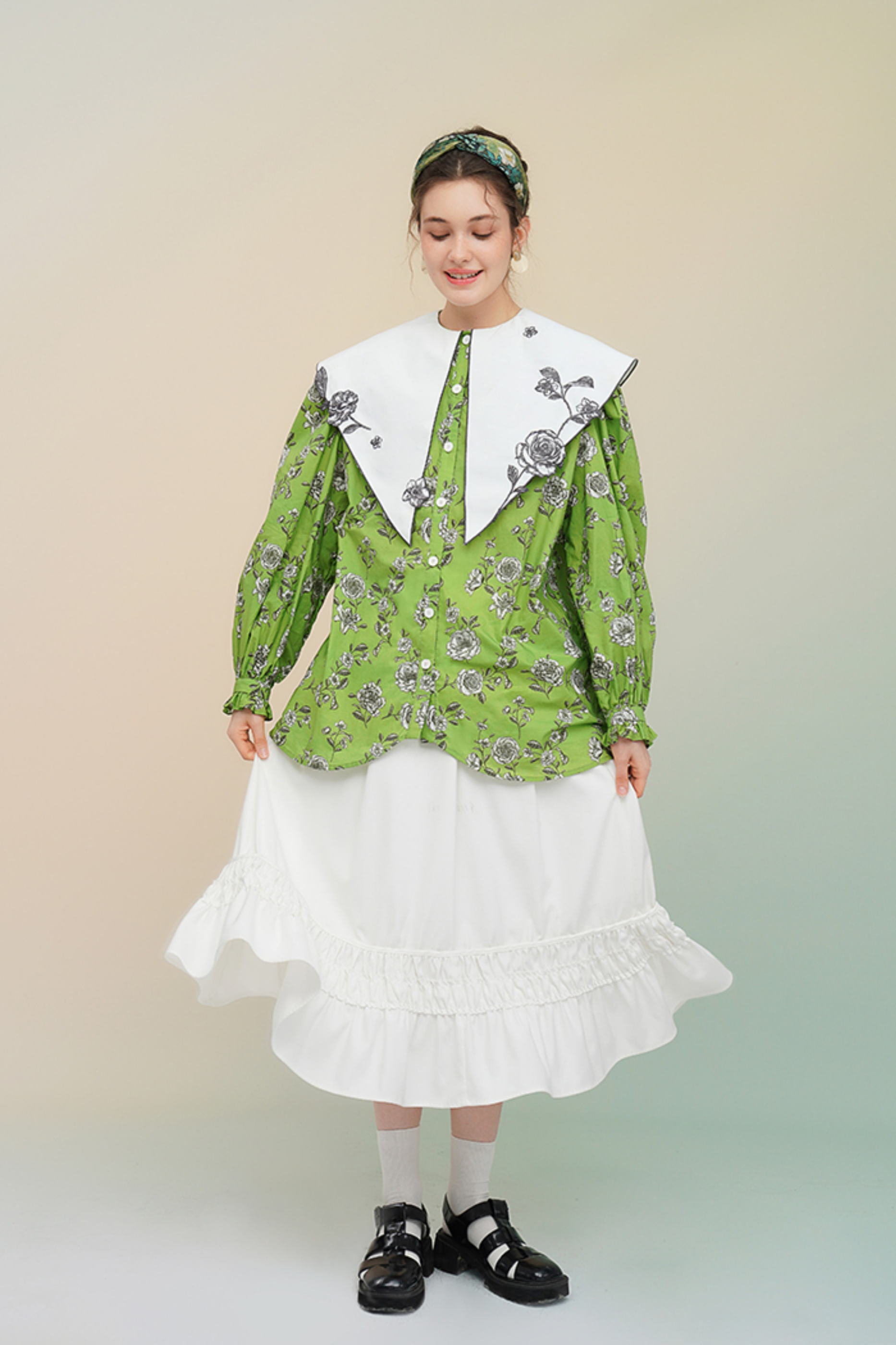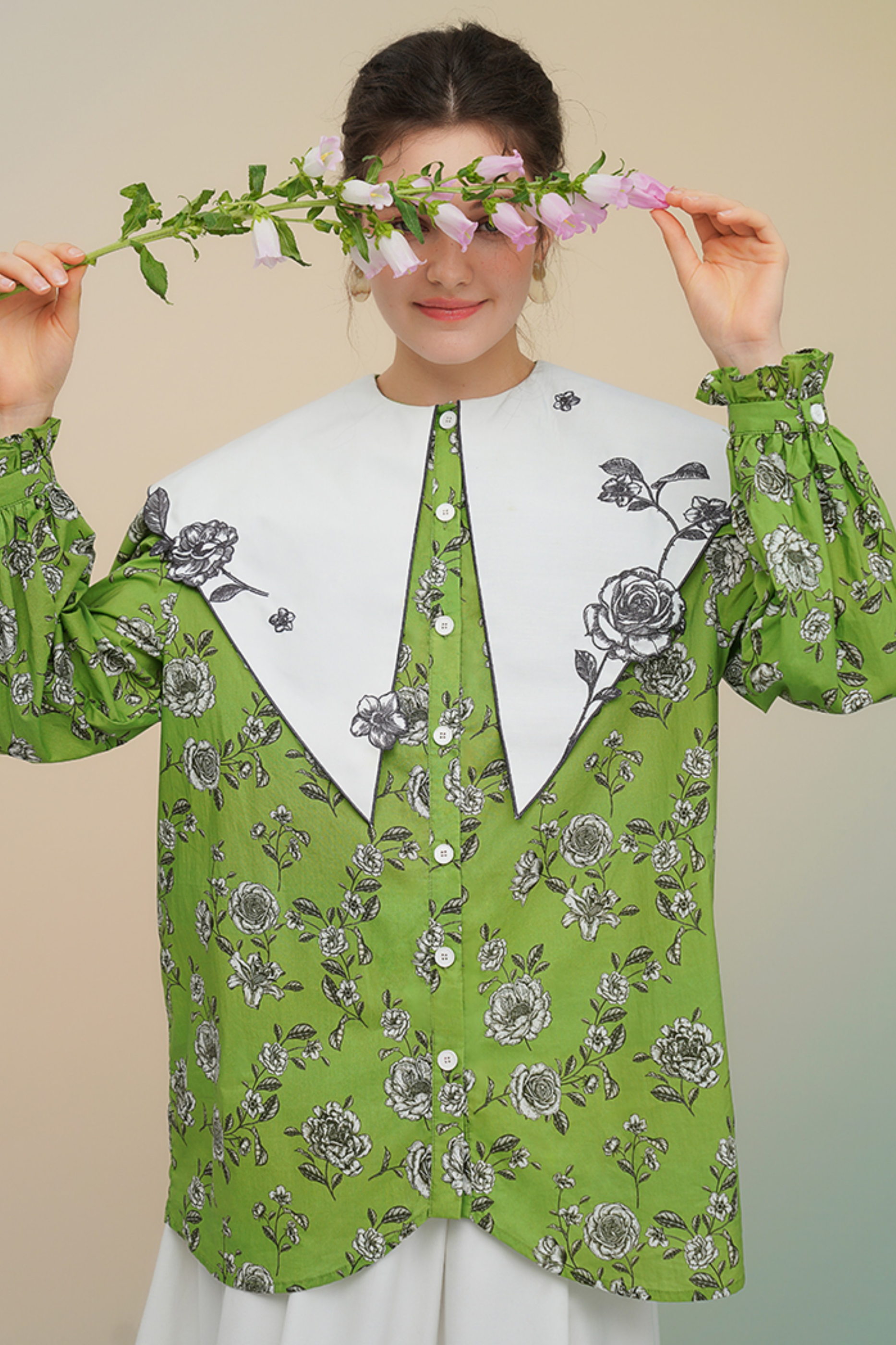 ❤グリーンローズフレンチヴィンテージプリントシャツ❤