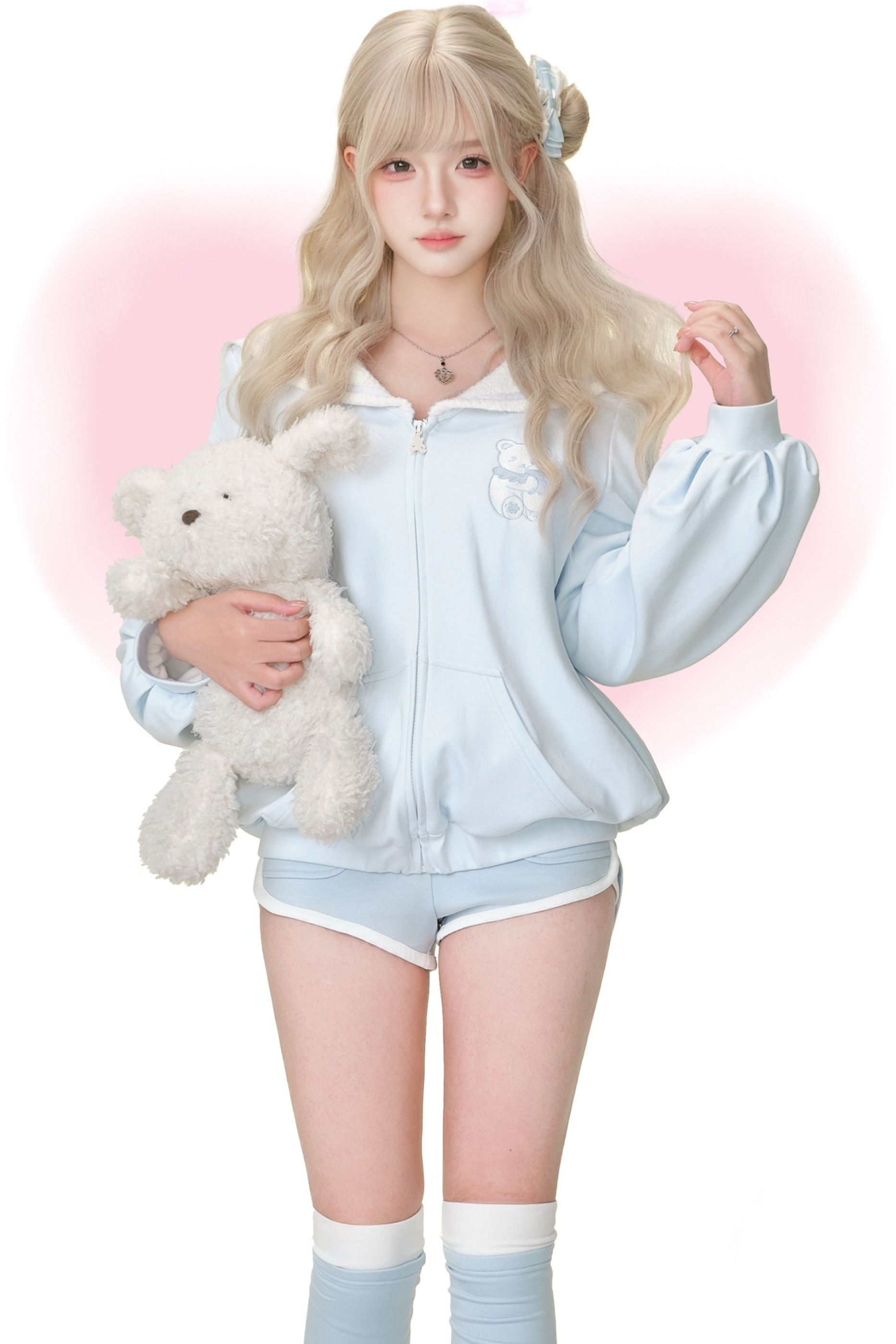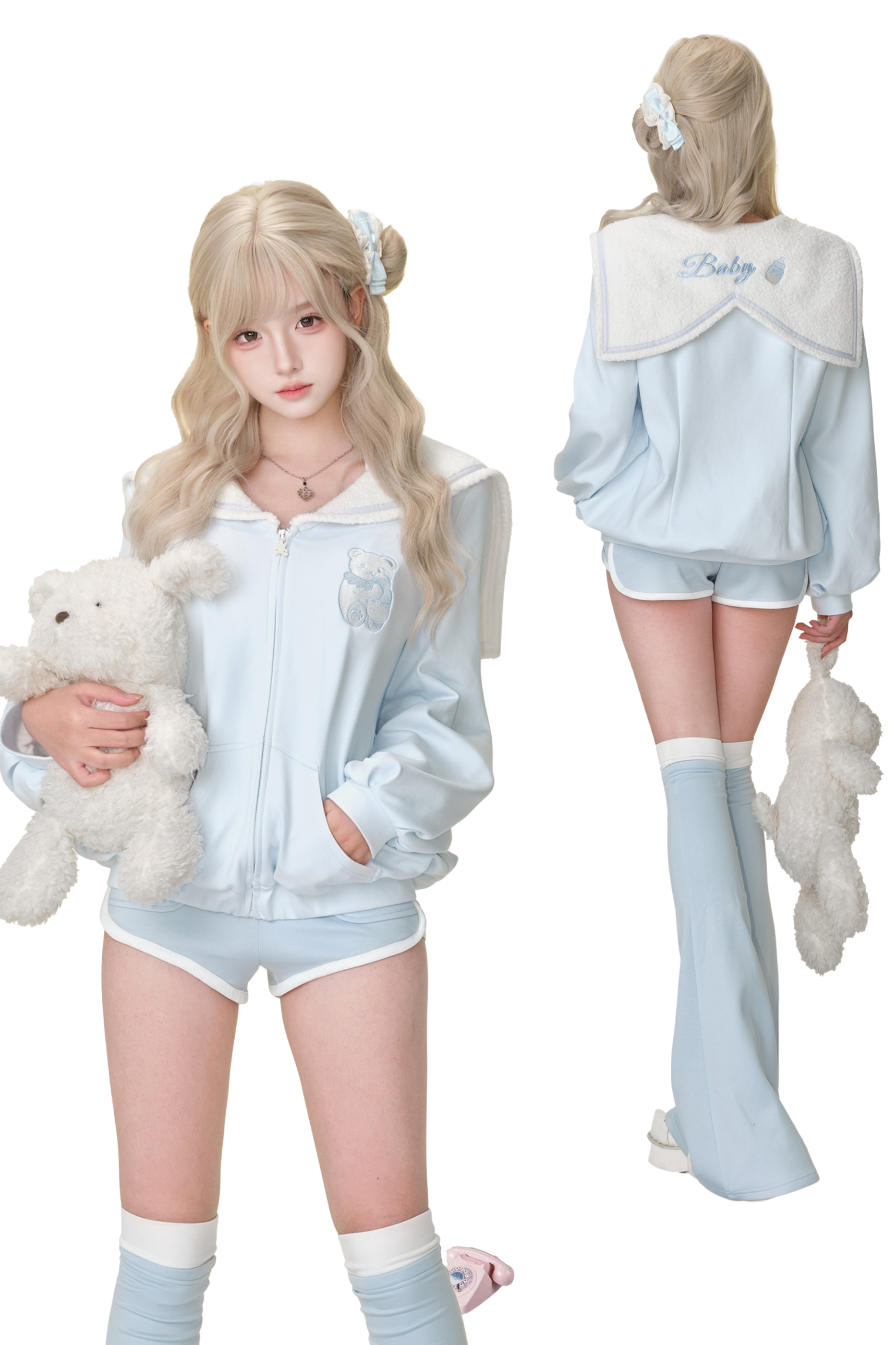 ❤ミルクブルースポーティーパーカー+ホルターネックサスペンダー + スポーツショーツ❤