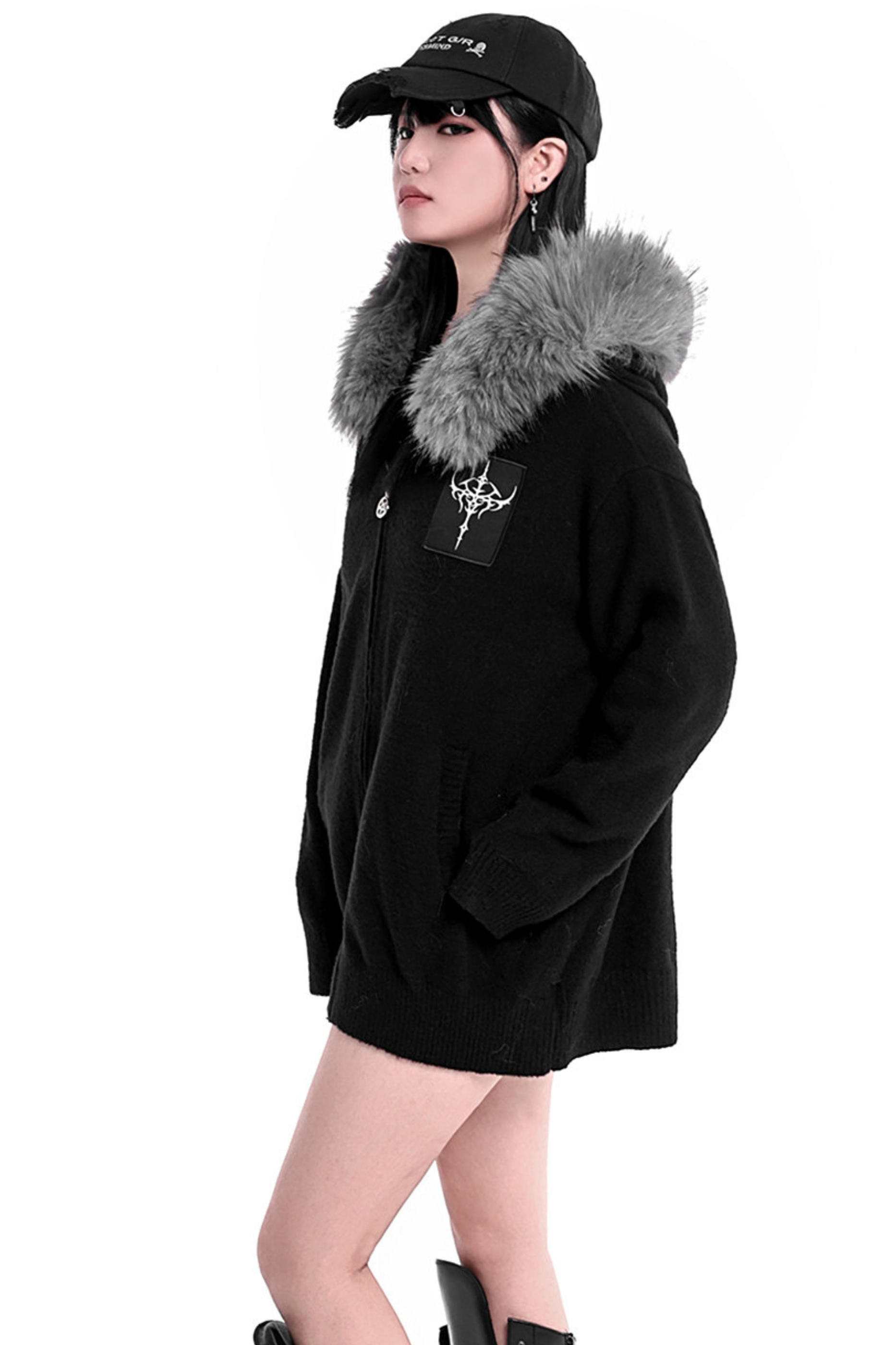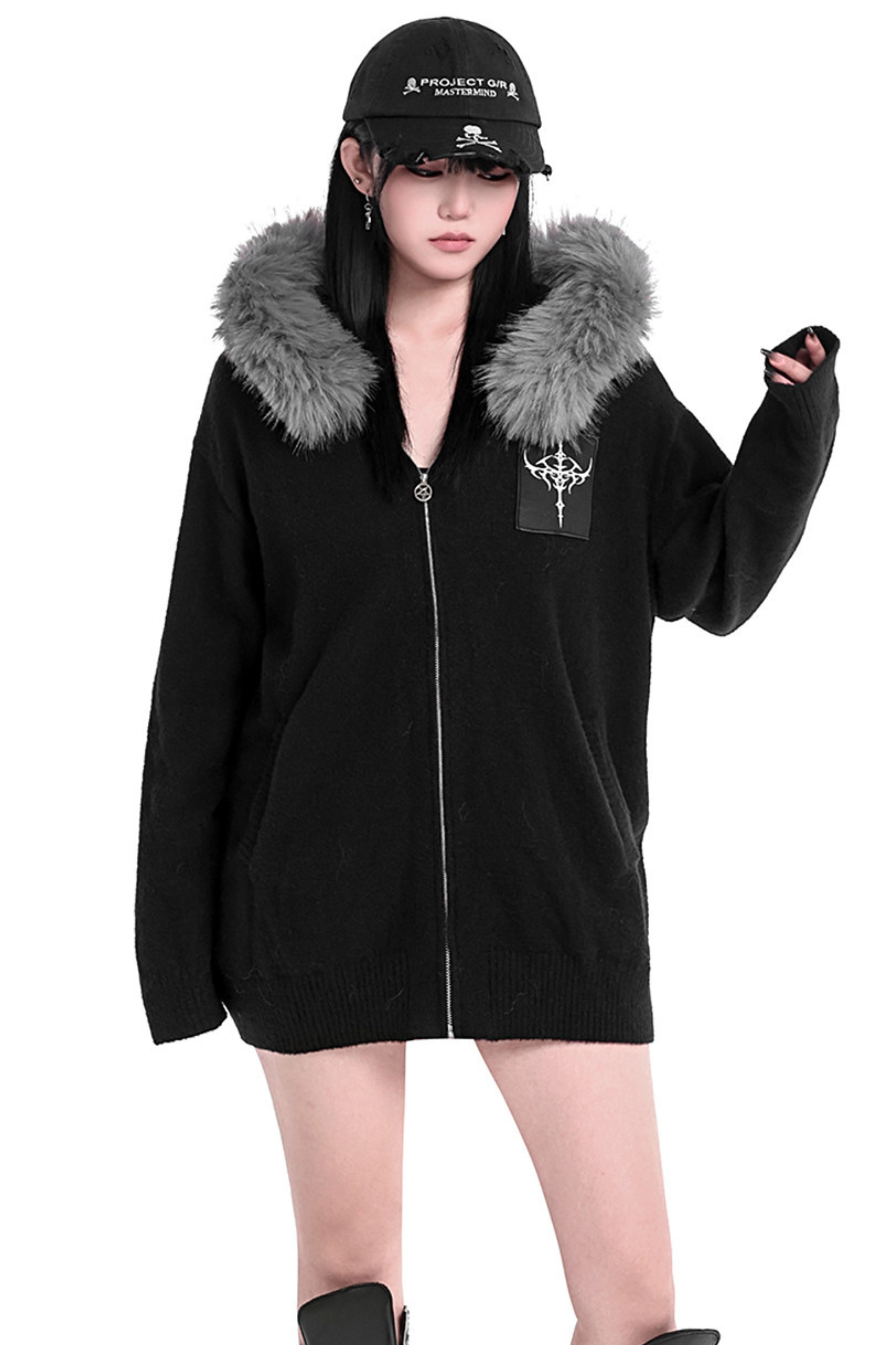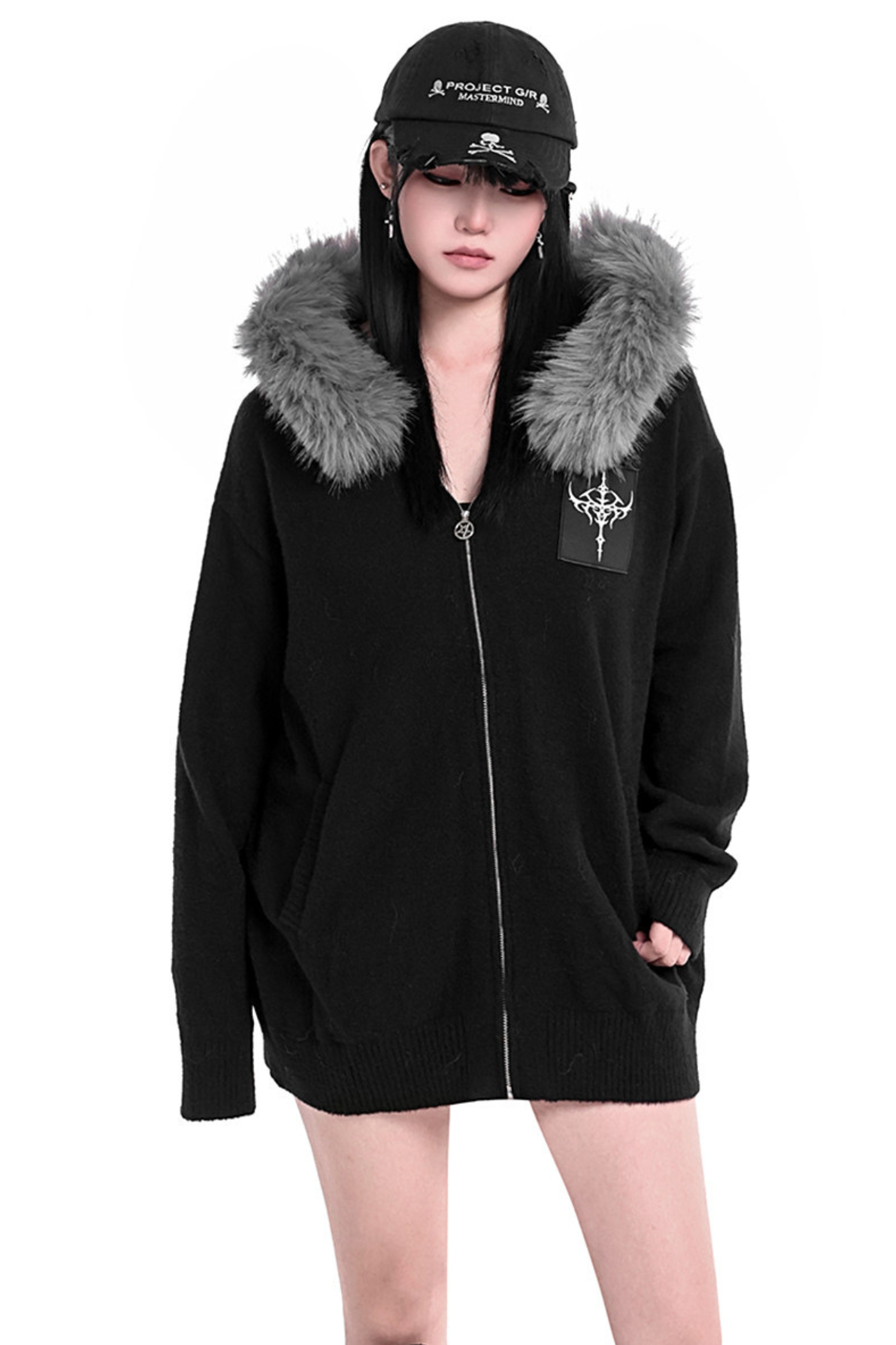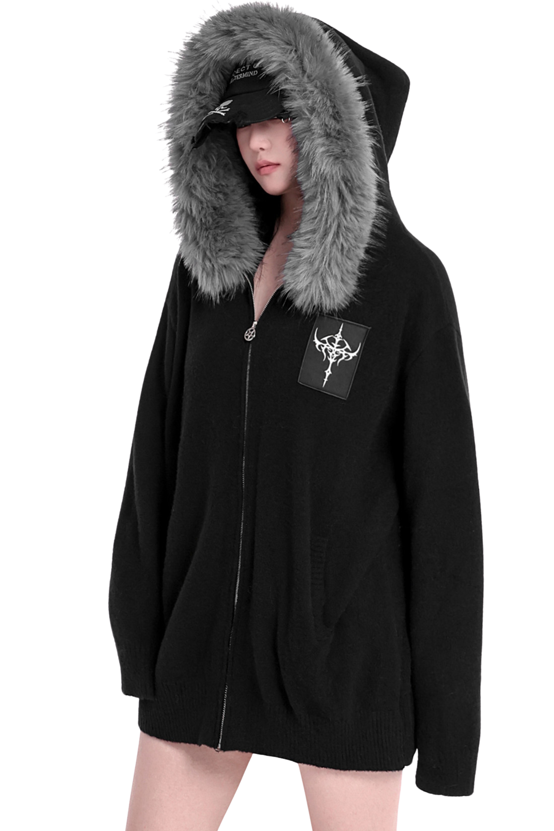 ❤ファーフードルーズポイントクロスジップパーカー❤